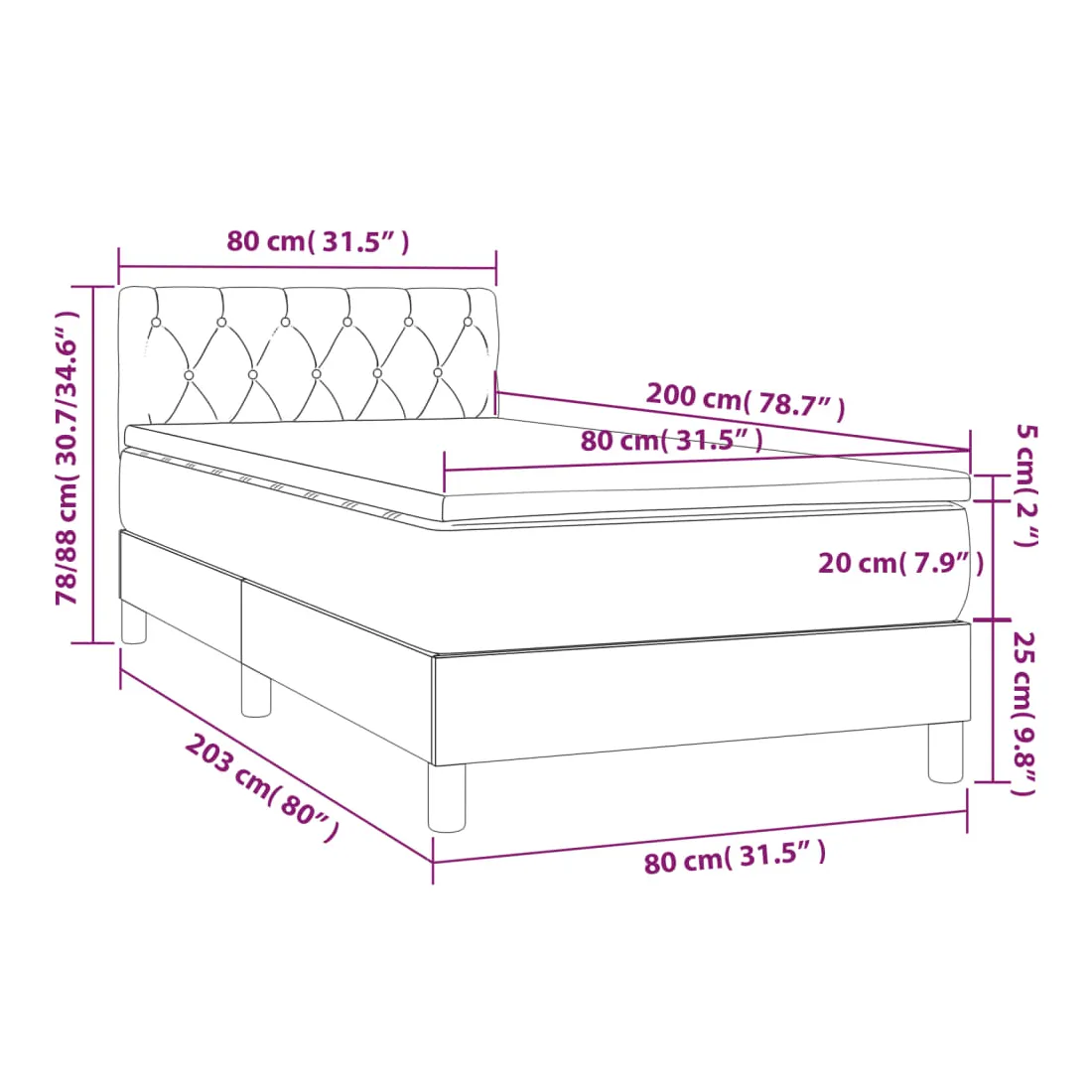 • Dimensions : 80 x 200 x 20 cm (l x L x H)