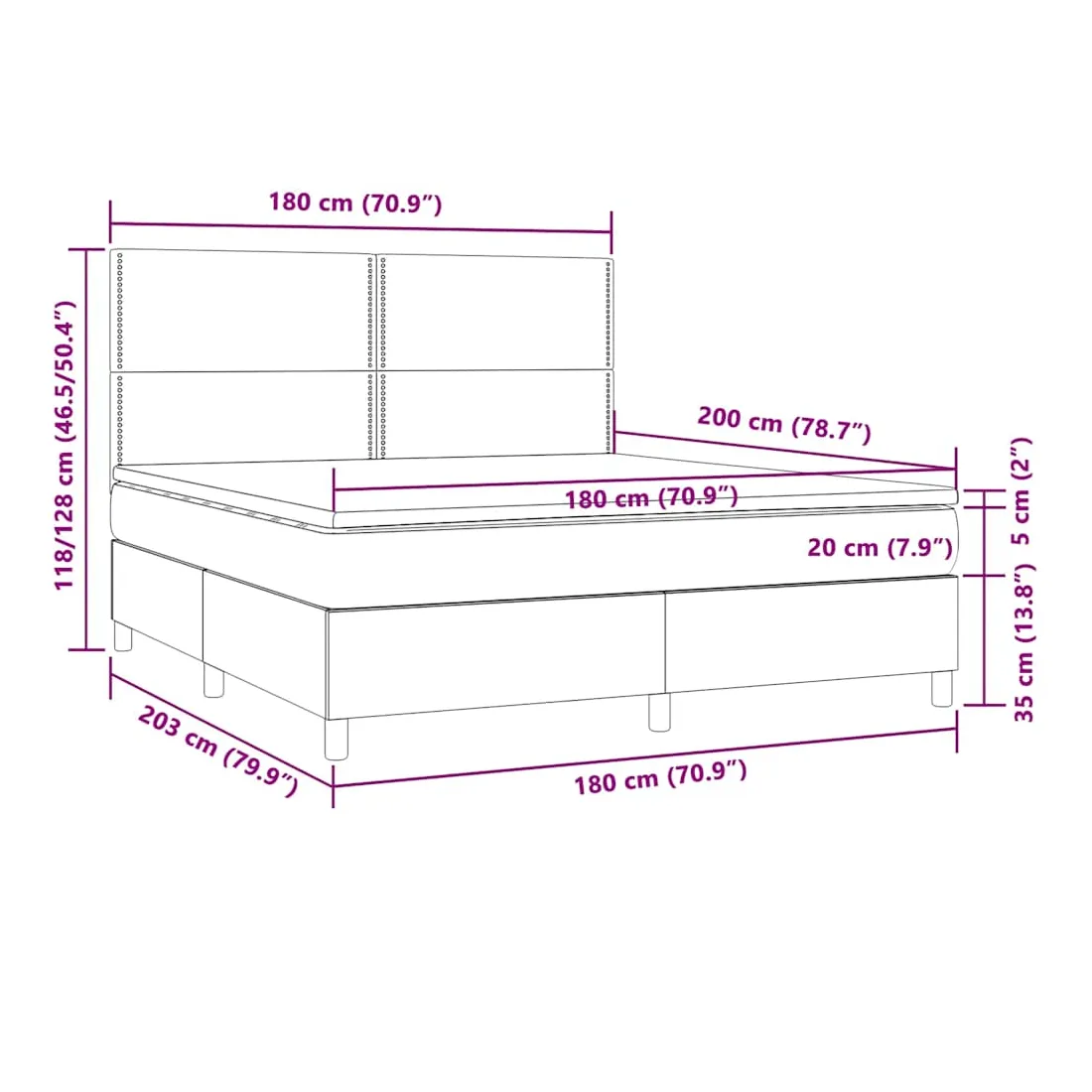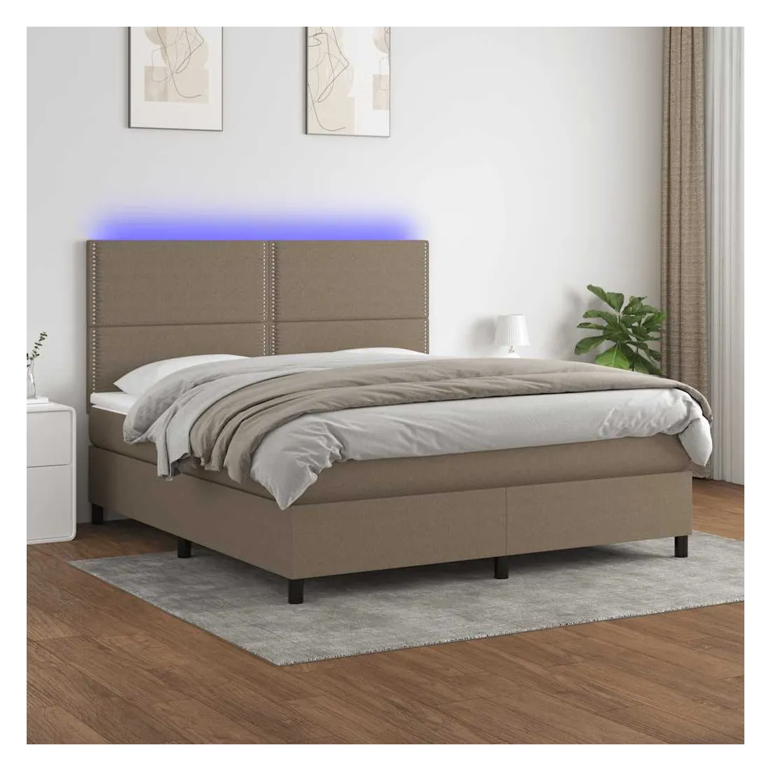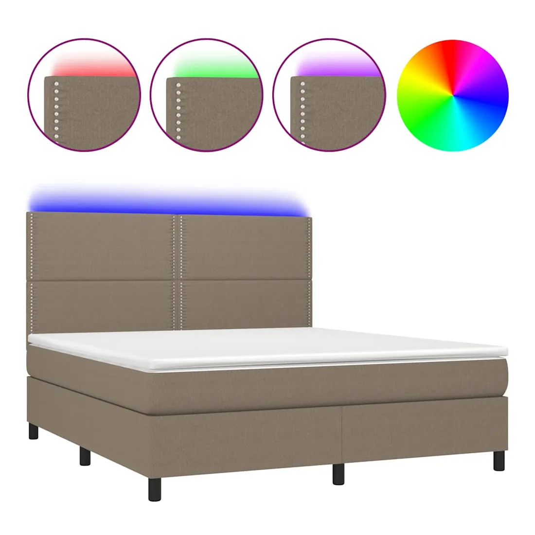 Sommier à lattes de lit et matelas et LED Taupe 180x200cm Tissu