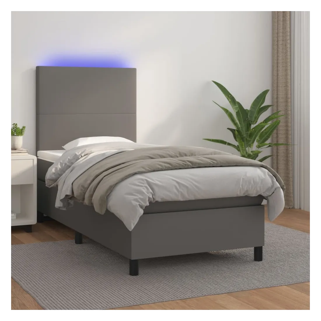 Utilisez ce sommier tapissier avec matelas et LED pour profiter d'un sommeil réparateur ! C'est le point central de votre chambre à coucher. Similicuir durable : le similicuir de qualité supérieure est un matériau très durable. Il est résistant aux taches, ce qui le rend facile à nettoyer avec un chiffon humide. La surface lisse donne également un aspect luxueux et la beauté du cuir véritable.Tête de lit pratique : la tête de lit est réglable en hauteur selon vos préférences. La tête de lit vous offre un excellent soutien du dos lorsque vous êtes assis dans votre lit pour lire ou regarder la télévision.Bande LED colorée : apportez de l'éclairage dans l'obscurité avec des lumières LED colorées !Matelas à ressorts ensachés : le ressort ensaché individuel intégré est connu pour sa très haute qualité tout en assurant un haut niveau de durabilité et d'adaptabilité. Il peut absorber efficacement le bruit et les chocs causés par les sauts et les rotations.Protège-matelas doux pour la peau : le protège-matelas est recouvert d'un tissu résistant et doux pour la peau, ce qui le rend souple et confortable. Remarque :Pour des raisons d'hygiène, le matelas ne peut pas être retourné si l'emballage est retiré ou ouvert.Seule la partie avec un symbole de ciseaux peut être coupée et seule la partie avec l'USB continuera à fonctionner comme avant.Chaque produit est livré avec un manuel de montage dans la boîte pour un montage facile.Ce produit est doté d'un connecteur USB, mais la source d'alimentation certifiée de USB 5V n'est pas incluse.