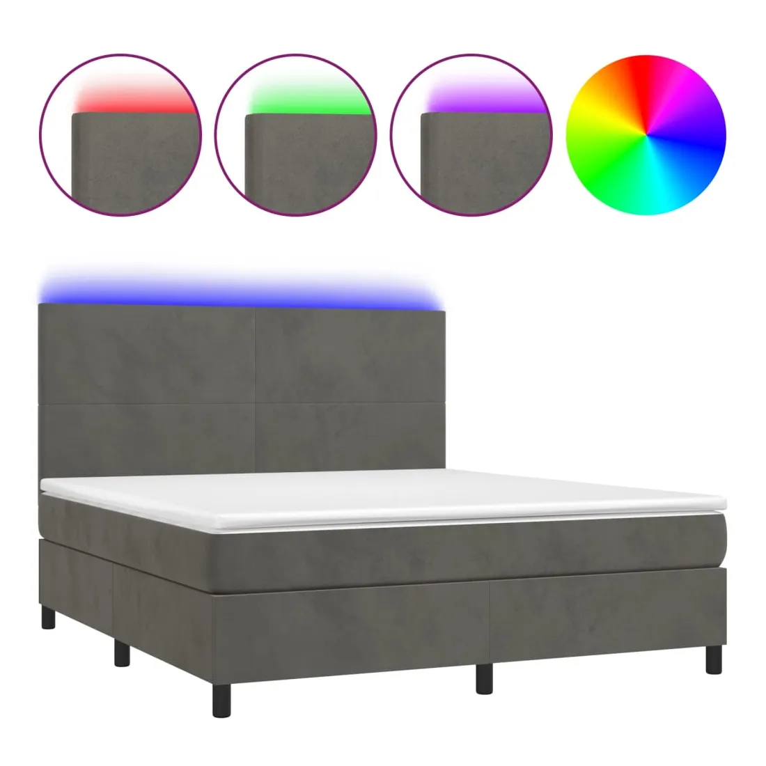 Sommier à lattes de lit et matelas et LED Gris foncé 160x200 cm