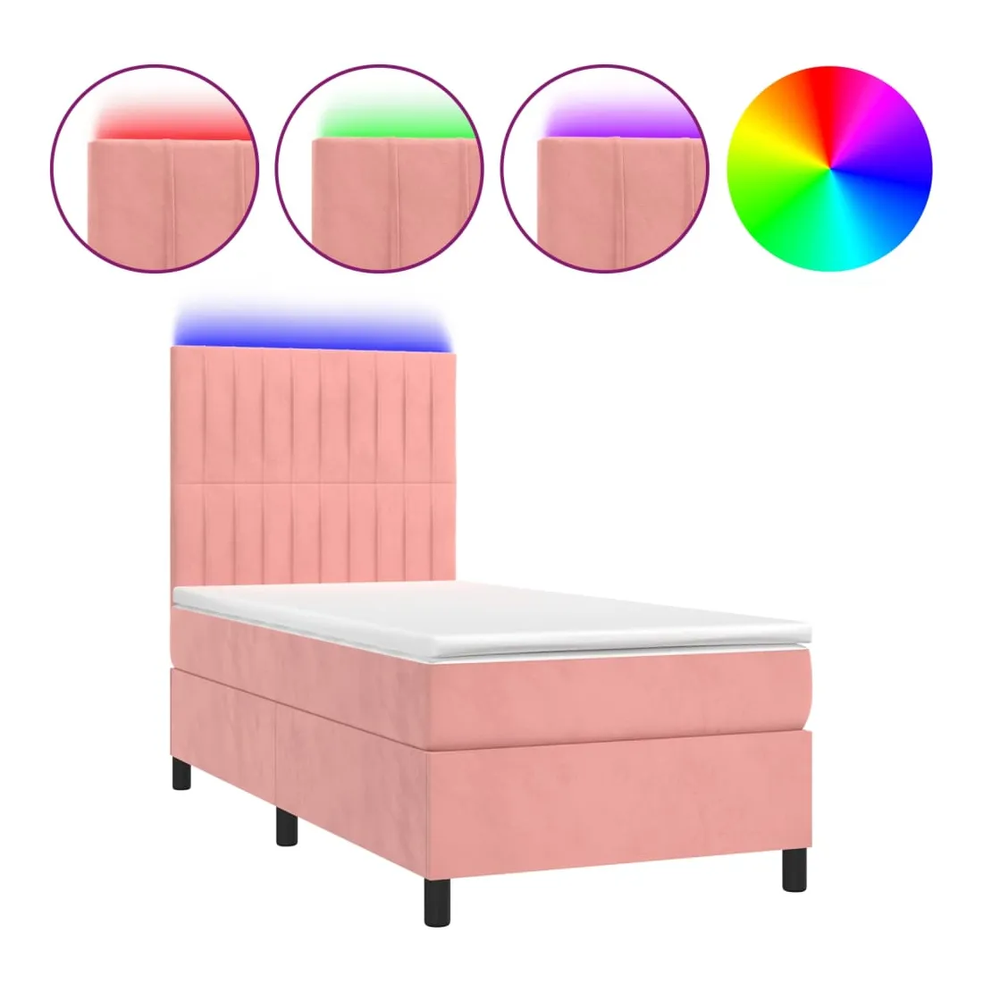 Sommier à lattes de lit avec matelas LED Rose 100x200cm Velours