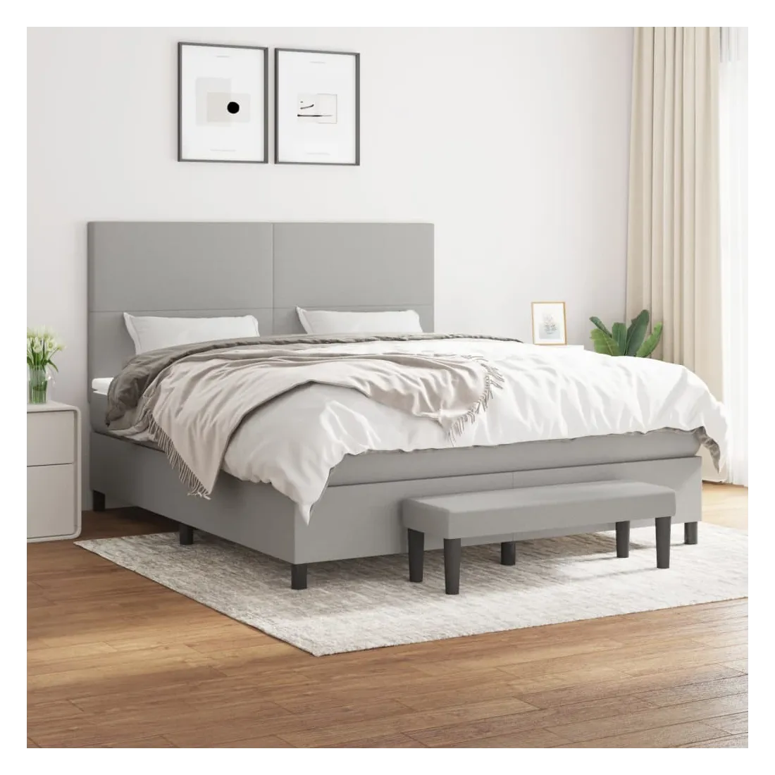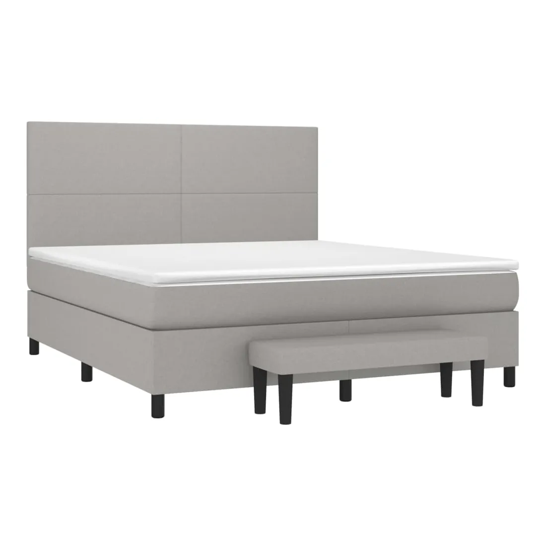 Utilisez ce lit à sommier pour profiter d'une nuit de sommeil réparatrice ! Il vous offre une relaxation maximale et un sommeil agréable. Tissu durable : le tissu présente un aspect simple et épuré, et il est respirant et durable.Tête de lit pratique : la tête de lit est réglable en hauteur selon vos préférences. La tête de lit vous offre un excellent soutien du dos lorsque vous êtes assis dans votre lit pour lire ou regarder la télévision.Matelas à ressorts ensachés : le ressort ensaché individuel intégré est connu pour sa très haute qualité tout en assurant un haut niveau de durabilité et d'adaptabilité. Il peut absorber efficacement le bruit et les chocs causés par les sauts et les rotations.Support moyen-dur : ce matelas de lit offre une stabilité accrue et juste le niveau de fermeté sans sacrifier le confort. Il est donc idéal pour les personnes qui dorment sur le dos ou sur le ventre.Protège-matelas doux pour la peau : le protège-matelas est recouvert d'un tissu résistant et doux pour la peau, ce qui le rend souple et confortable.Banc multifonctionnel : ce banc peut servir de siège supplémentaire dans votre maison. Il peut également être utilisé comme banc de bout de lit. Remarque :Pour des raisons d'hygiène, le matelas ne peut pas être retourné si l'emballage est retiré ou ouvert.Chaque produit est livré avec un manuel de montage dans la boîte pour un montage facile.