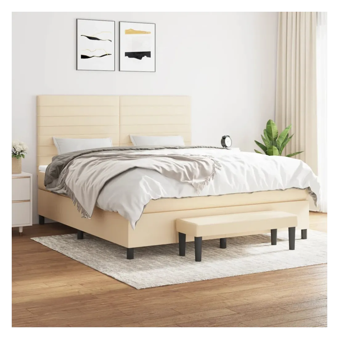 Sommier à lattes de lit avec matelas Crème 180x200 cm Tissu