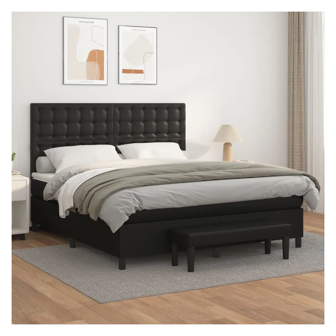 Utilisez ce lit à sommier pour profiter d'une nuit de sommeil réparatrice ! Il vous offre une relaxation maximale et un sommeil agréable. Similicuir durable : le similicuir de qualité supérieure est un matériau très durable. Il est résistant aux taches, ce qui le rend facile à nettoyer avec un chiffon humide. La surface lisse donne également un aspect luxueux et la beauté du cuir véritable.Tête de lit pratique : la tête de lit est réglable en hauteur selon vos préférences. La tête de lit vous offre un excellent soutien du dos lorsque vous êtes assis dans votre lit pour lire ou regarder la télévision.Matelas à ressorts ensachés : le ressort ensaché individuel intégré est connu pour sa très haute qualité tout en assurant un haut niveau de durabilité et d'adaptabilité. Il peut absorber efficacement le bruit et les chocs causés par les sauts et les rotations.Support moyen-dur : ce matelas de lit offre une stabilité accrue et juste le niveau de fermeté sans sacrifier le confort. Il est donc idéal pour les personnes qui dorment sur le dos ou sur le ventre.Protège-matelas doux pour la peau : le protège-matelas est recouvert d'un tissu résistant et doux pour la peau, ce qui le rend souple et confortable.Banc multifonctionnel : ce banc peut servir de siège supplémentaire dans votre maison. Il peut également être utilisé comme banc de bout de lit. Remarque :Pour des raisons d'hygiène, le matelas ne peut pas être retourné si l'emballage est retiré ou ouvert.Chaque produit est livré avec un manuel de montage dans la boîte pour un montage facile.