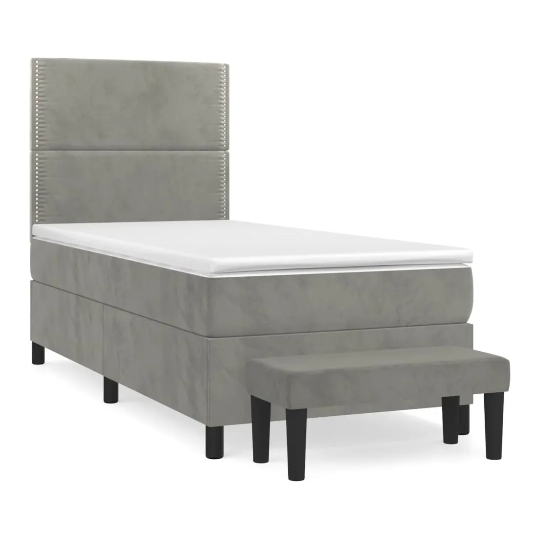 Sommier à lattes de lit et matelas Gris clair 90x200 cm Velours