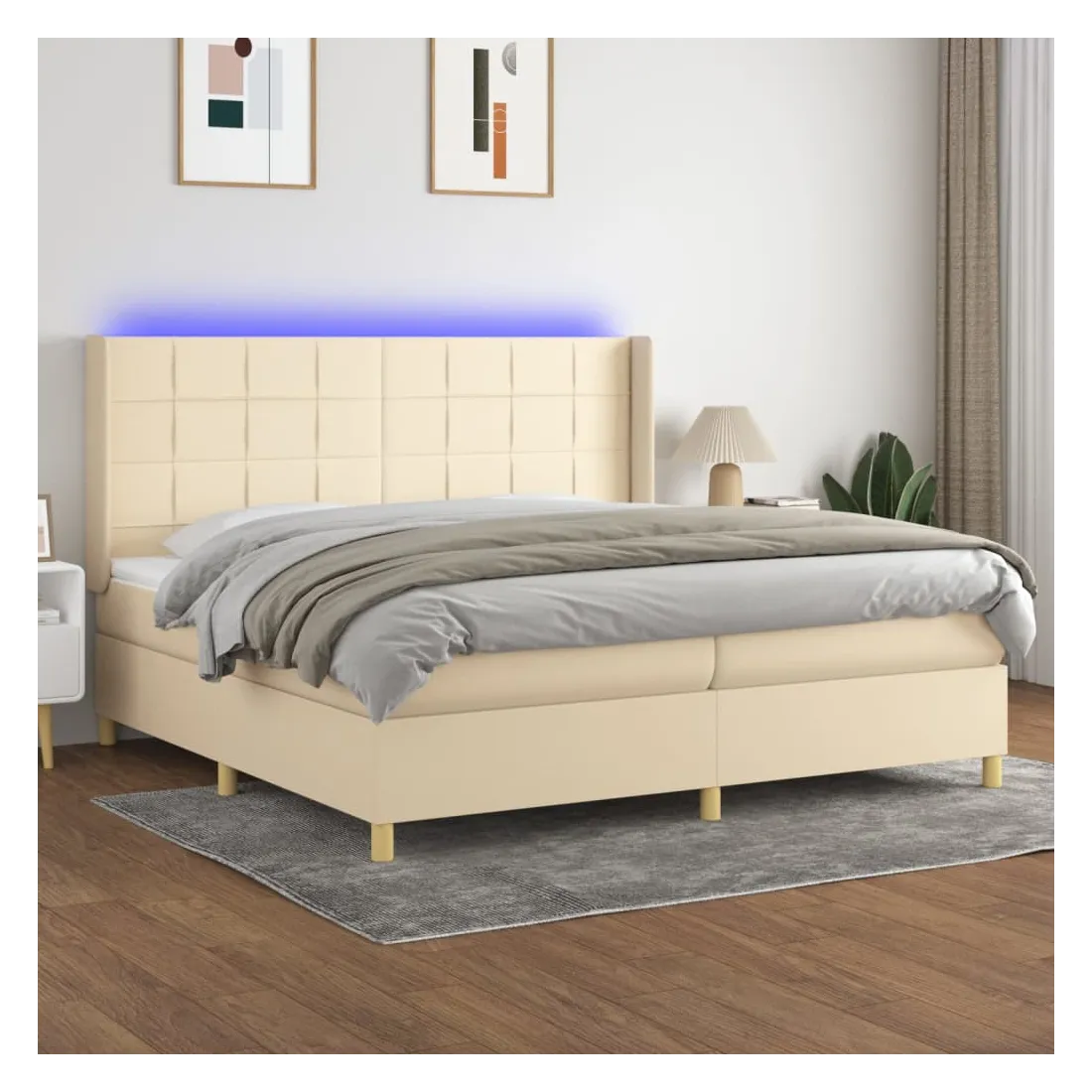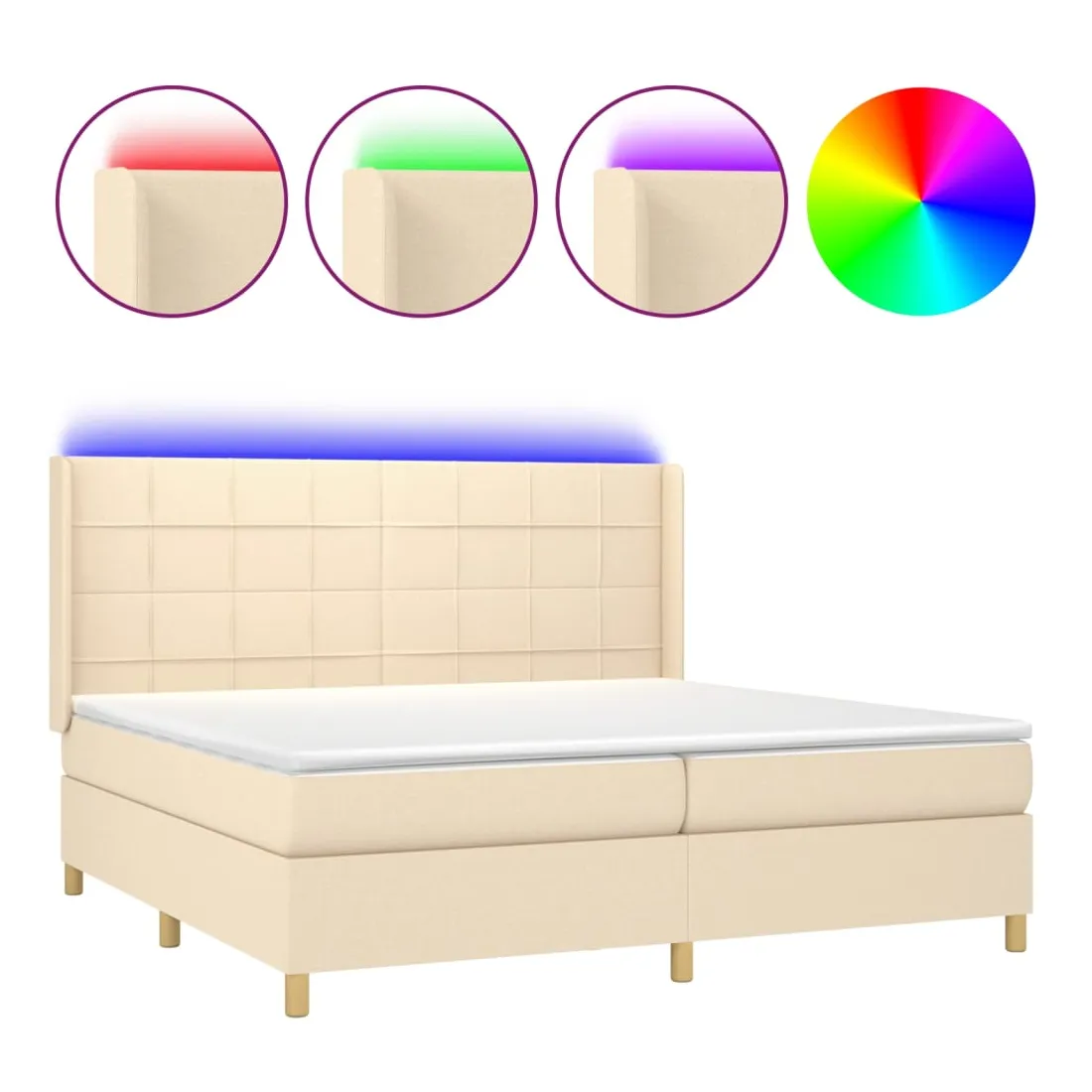 Sommier à lattes de lit matelas et LED Crème 200x200 cm Tissu