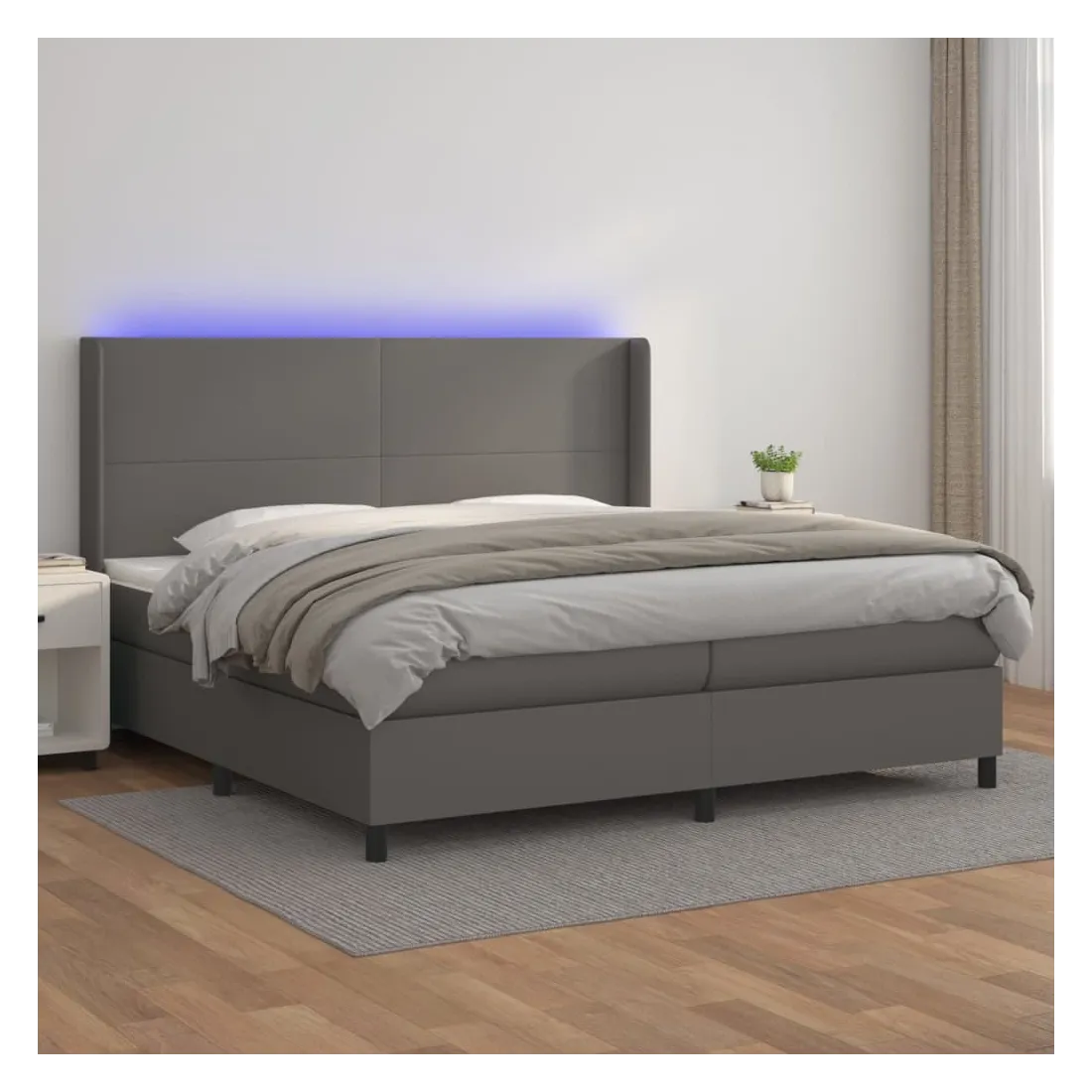 Utilisez ce sommier tapissier avec matelas et LED pour profiter d'un sommeil réparateur ! C'est le point central de votre chambre à coucher. Similicuir durable : le similicuir de qualité supérieure est un matériau très durable. Il est résistant aux taches, ce qui le rend facile à nettoyer avec un chiffon humide. La surface lisse donne également un aspect luxueux et la beauté du cuir véritable.Tête de lit pratique : la tête de lit est réglable en hauteur selon vos préférences. La tête de lit vous offre un excellent soutien du dos lorsque vous êtes assis dans votre lit pour lire ou regarder la télévision.Bande LED colorée : apportez de l'éclairage dans l'obscurité avec des lumières LED colorées !Matelas à ressorts ensachés : le ressort ensaché individuel intégré est connu pour sa très haute qualité tout en assurant un haut niveau de durabilité et d'adaptabilité. Il peut absorber efficacement le bruit et les chocs causés par les sauts et les rotations.Protège-matelas doux pour la peau : le protège-matelas est recouvert d'un tissu résistant et doux pour la peau, ce qui le rend souple et confortable. Remarque :Pour des raisons d'hygiène, le matelas ne peut pas être retourné si l'emballage est retiré ou ouvert.Seule la partie avec un symbole de ciseaux peut être coupée et seule la partie avec l'USB continuera à fonctionner comme avant.Chaque produit est livré avec un manuel de montage dans la boîte pour un montage facile.Ce produit est doté d'un connecteur USB, mais la source d'alimentation certifiée de USB 5V n'est pas incluse.