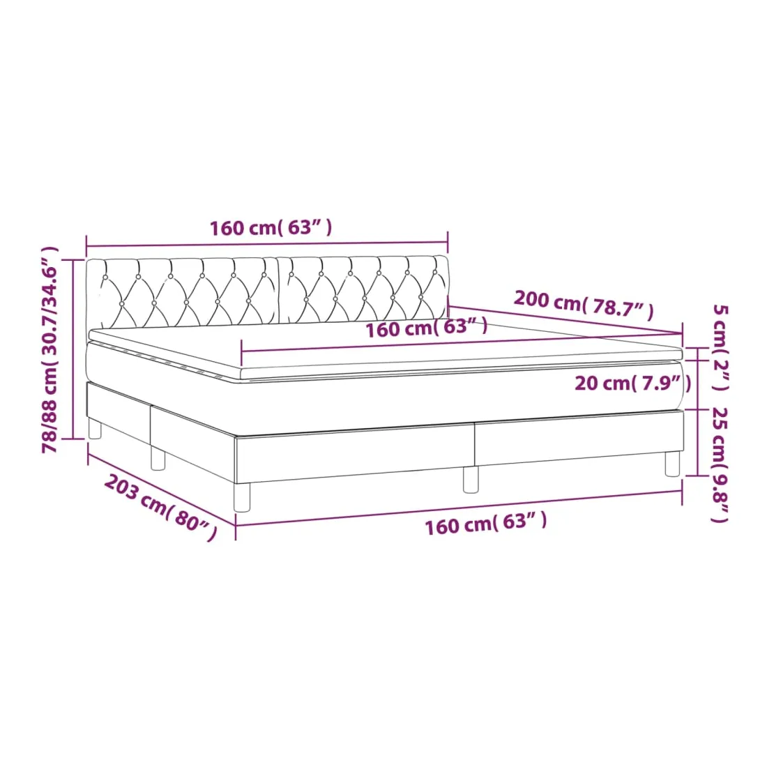 • Dimensions : 160 x 200 x 20 cm (l x L x H)