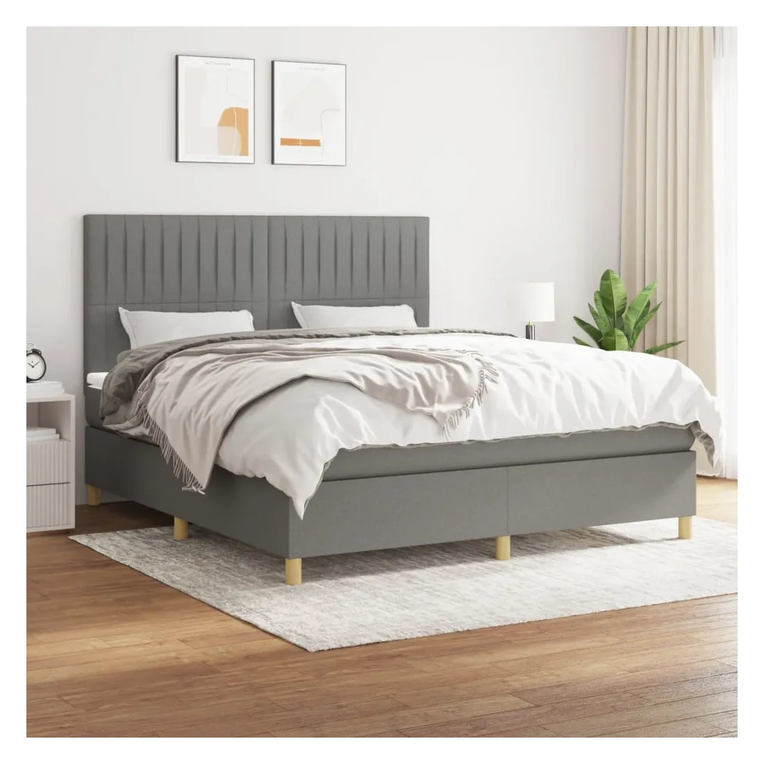 Sommier à lattes de lit avec matelas Gris foncé 160x200cm Tissu