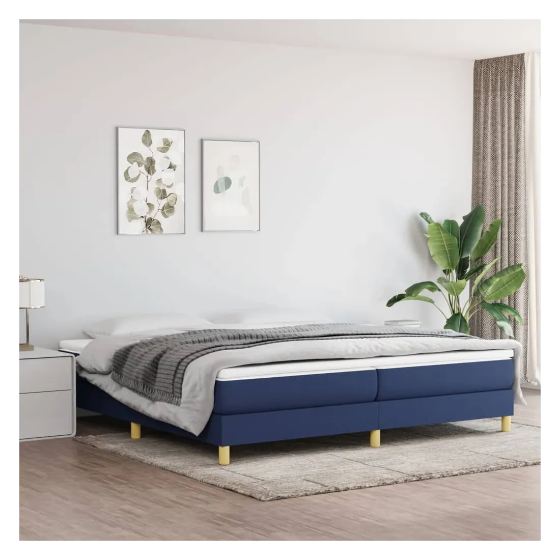 Sommier à lattes de lit avec matelas Bleu 200x200 cm Tissu