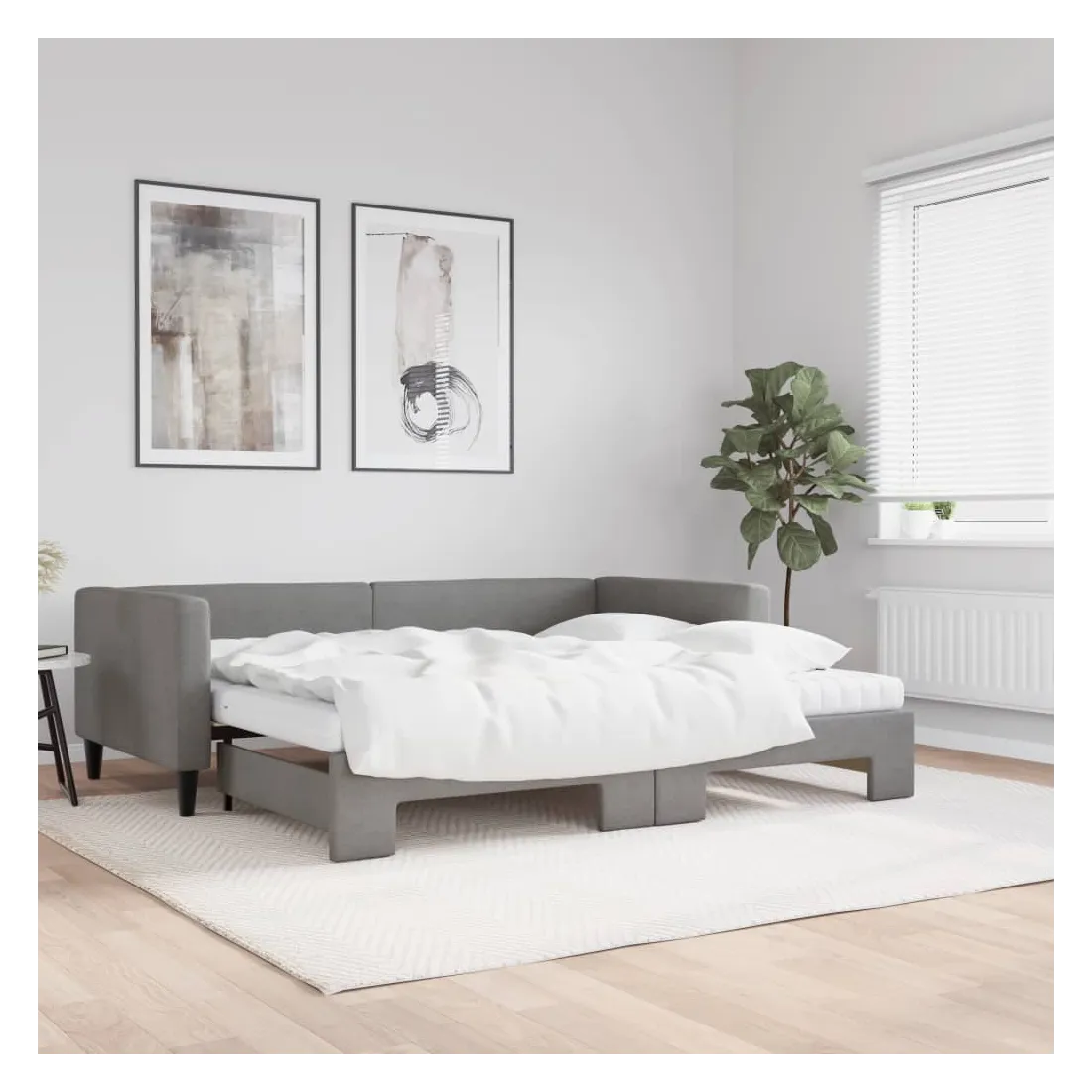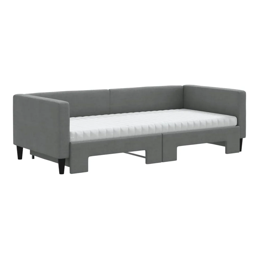 Ce lit de repos 2 en 1 avec lit gigogne, servant à la fois de canapé et de lit, constitue un supplément pratique et accrocheur à votre salon ou chambre à coucher. Lit de repos polyvalent : le canapé-lit fonctionne comme un canapé pendant la journée et se transforme facilement en lit double la nuit en retirant le lit gigogne, offrant une solution pratique pour accueillir des invités et maximiser l'espace. Matelas en mousse confortable : ce lit est fourni avec deux matelas en mousse pour un soutien maximal et un confort optimal. Tissu durable et construction solide : ce canapé-lit a une structure robuste en bois et en métal et est recouvert d'un tissu durable et confortable.