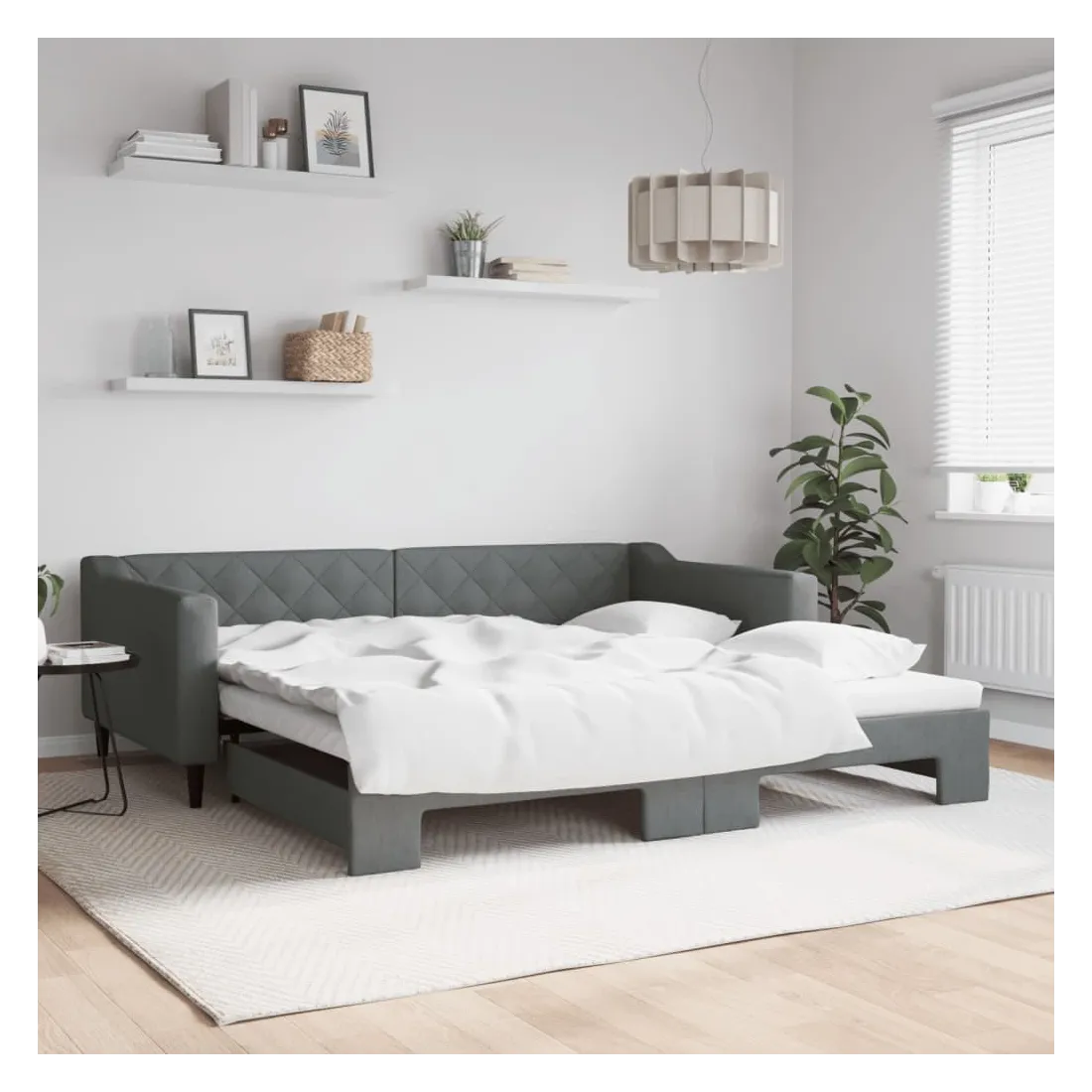 Ce lit de repos 2 en 1 avec lit gigogne, servant à la fois de canapé et de lit, constitue un supplément pratique et accrocheur à votre salon ou chambre à coucher. Lit de repos polyvalent : le canapé-lit fonctionne comme un canapé pendant la journée et se transforme facilement en lit double la nuit en retirant le lit gigogne, offrant une solution pratique pour accueillir des invités et maximiser l'espace.Tissu durable et construction solide : ce canapé-lit a une structure robuste en bois et en métal et est recouvert d'un tissu durable et confortable.Design moderne : le canapé-lit a un design moderne qui présente des lignes épurées, un aspect minimaliste, et ajoutera un style moderne à votre intérieur ! Bon à savoir :Les matelas ne sont pas inclus avec ce lit. Nous proposons une sélection variée de matelas. Vous pouvez consulter notre boutique pour trouver les matelas assortis.