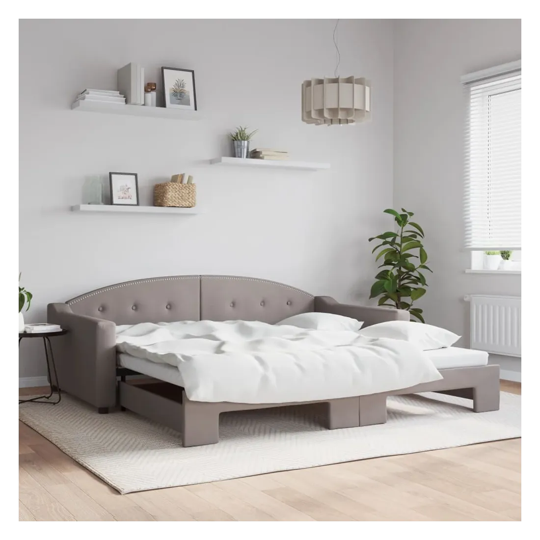 Ce lit de repos 2 en 1 avec lit gigogne, servant à la fois de canapé et de lit, constitue un supplément pratique et accrocheur à votre salon ou chambre à coucher. Lit de repos polyvalent : le canapé-lit fonctionne comme un canapé pendant la journée et se transforme facilement en lit double la nuit en retirant le lit gigogne, offrant une solution pratique pour accueillir des invités et maximiser l'espace. Tissu durable : lit d'appoint est en tissu. Le tissu présente un aspect simple et épuré tout en restant respirant et durable. Construction solide : la structure en bois et en métal du lit assure robustesse et stabilité. Bon à savoir :Les matelas ne sont pas inclus avec ce lit de repos. Nous proposons une sélection variée de matelas. Vous pouvez consulter notre boutique pour les matelas assortis.