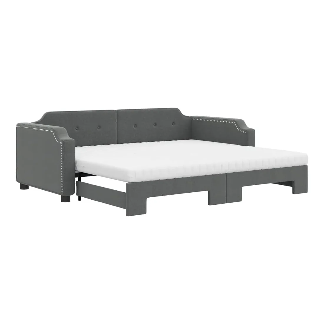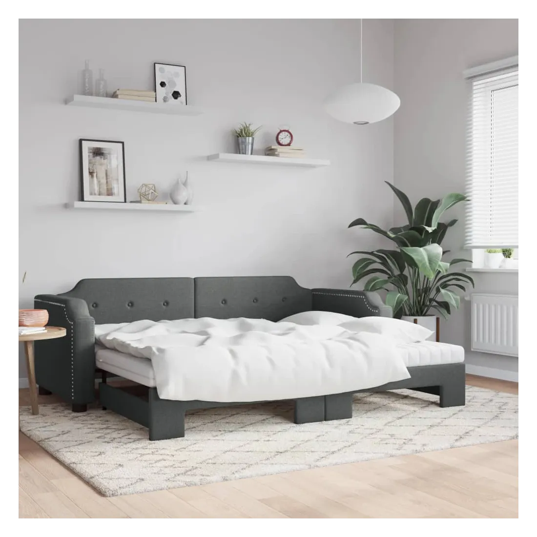 Ce lit de repos 2 en 1 avec lit gigogne, servant à la fois de canapé et de lit, constitue un supplément pratique et accrocheur à votre salon ou chambre à coucher. Lit de repos polyvalent : le canapé-lit fonctionne comme un canapé pendant la journée et se transforme facilement en lit double la nuit en retirant le lit gigogne, offrant une solution pratique pour accueillir des invités et maximiser l'espace. Matelas en mousse confortable : ce lit est fourni avec deux matelas en mousse pour un soutien maximal et un confort optimal. Tissu durable et construction solide : ce canapé-lit a une structure robuste en bois et en métal et est recouvert d'un tissu durable et confortable.