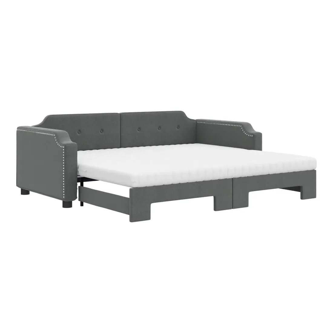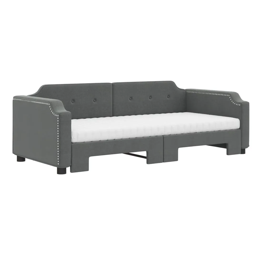Ce lit de repos 2 en 1 avec lit gigogne, servant à la fois de canapé et de lit, constitue un supplément pratique et accrocheur à votre salon ou chambre à coucher. Lit de repos polyvalent : le canapé-lit fonctionne comme un canapé pendant la journée et se transforme facilement en lit double la nuit en retirant le lit gigogne, offrant une solution pratique pour accueillir des invités et maximiser l'espace. Matelas en mousse confortable : ce lit est fourni avec deux matelas en mousse pour un soutien maximal et un confort optimal. Tissu durable et construction solide : ce canapé-lit a une structure robuste en bois et en métal et est recouvert d'un tissu durable et confortable.
