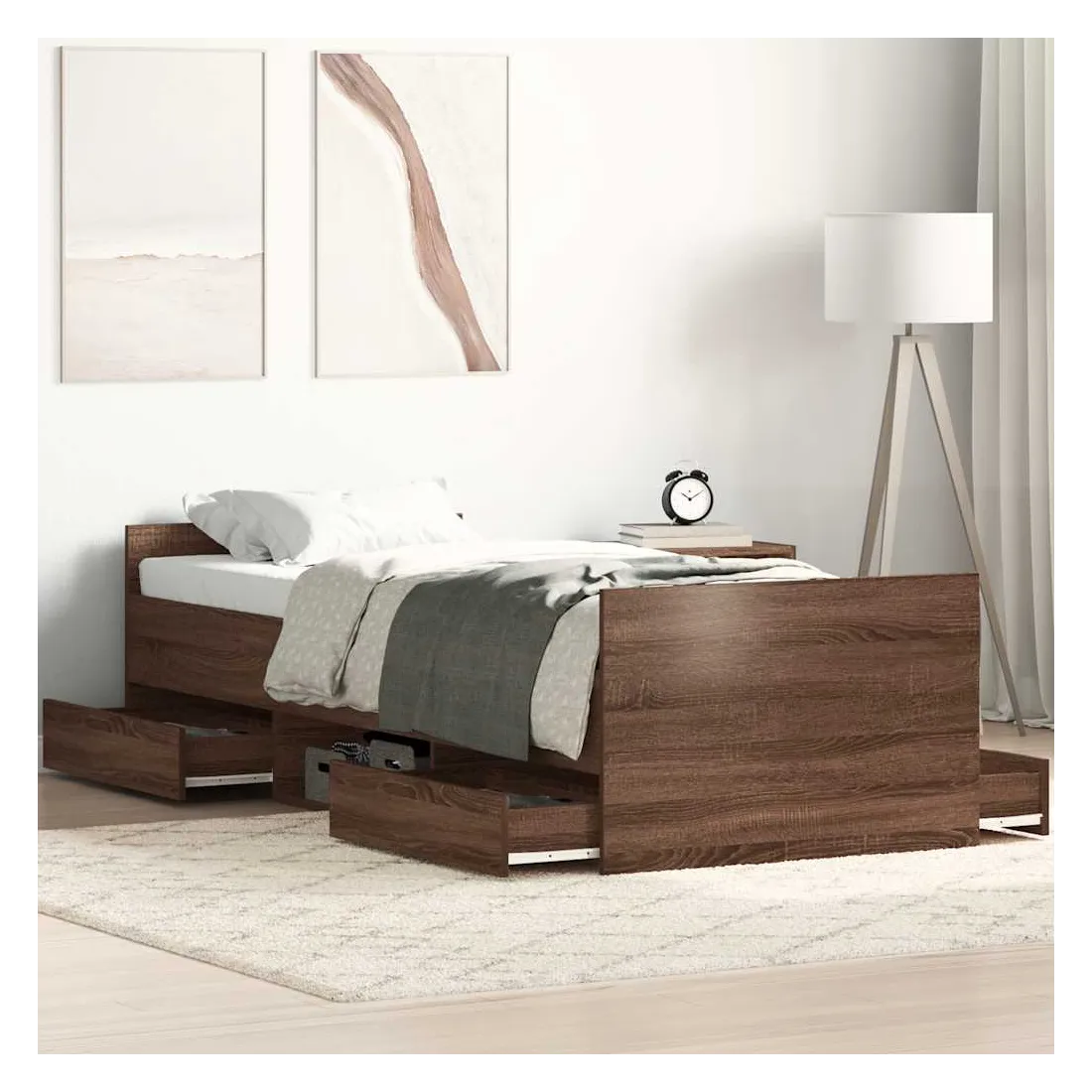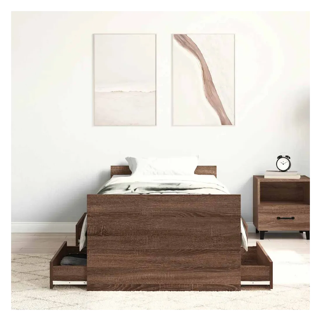 Obtenez une meilleure nuit de sommeil reposante grâce à ce cadre de lit ! Il est un supplément accueillant à toute chambre à coucher. Matériau durable : le bois d'ingénierie est d'une qualité exceptionnelle avec une surface lisse et présente également résistance, stabilité et résistance à l'humidité.Tête de lit et pied de lit fonctionnels : la tête et le pied de lit du sommier maintiennent votre matelas en place. De plus, la tête de lit vous offre un excellent soutien du dos lorsque vous vous asseyez dans le lit pour lire ou regarder la télévision.Grand espace de rangement : ce lit d'appoint dispose de 4 tiroirs et des étagères qui offrent suffisamment d'espace pour ranger vos vêtements, chaussettes, jouets, coussins, etc.Lattes robustes : les lattes de contreplaqué assurent une bonne répartition du poids, garantissant que le matelas reste en place à chaque torsion de votre corps pendant le sommeil. Bon à savoir :Un matelas n'est pas inclus avec ce lit. Nous offrons une sélection variée de matelas. Vous pouvez consulter notre boutique pour trouver un matelas assorti.