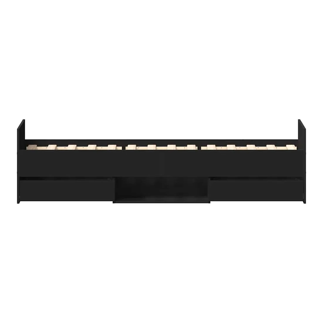 Obtenez une meilleure nuit de sommeil reposante grâce à ce cadre de lit ! Il est un supplément accueillant à toute chambre à coucher. Matériau durable : le bois d'ingénierie est d'une qualité exceptionnelle avec une surface lisse et présente également résistance, stabilité et résistance à l'humidité.Tête de lit et pied de lit fonctionnels : la tête et le pied de lit du sommier maintiennent votre matelas en place. De plus, la tête de lit vous offre un excellent soutien du dos lorsque vous vous asseyez dans le lit pour lire ou regarder la télévision.Grand espace de rangement : ce lit d'appoint dispose de 4 tiroirs et des étagères qui offrent suffisamment d'espace pour ranger vos vêtements, chaussettes, jouets, coussins, etc.Lattes robustes : les lattes de contreplaqué assurent une bonne répartition du poids, garantissant que le matelas reste en place à chaque torsion de votre corps pendant le sommeil. Bon à savoir :Un matelas n'est pas inclus avec ce lit. Nous offrons une sélection variée de matelas. Vous pouvez consulter notre boutique pour trouver un matelas assorti.