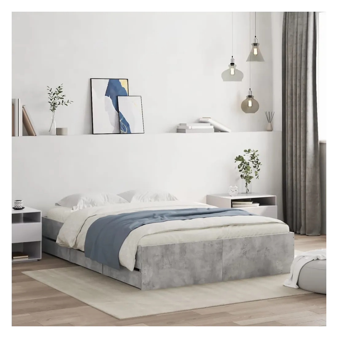 Ajoutez une touche moderne à votre chambre à coucher avec ce cadre de lit avec tiroirs ! Il apportera une touche pratique et décorative à votre espace de vie. Matériau durable : le cadre de lit est fabriquée en bois d'ingénierie. Le bois d'ingénierie est d'une qualité exceptionnelle avec une surface lisse et présente également de la résistance, de la stabilité et de la résistance à l'humidité.Lattes robustes : les lattes de contreplaqué assurent une bonne répartition du poids, garantissant que le matelas reste en place à chaque torsion de votre corps pendant le sommeil.Fonction de rangement : les tiroirs de lit inclus offrent suffisamment d'espace de rangement pour ranger vos articles essentiels, gardant votre pièce propre et bien rangée. Bon à savoir :Un matelas n'est pas inclus avec ce lit. Nous offrons une sélection variée de matelas. Vous pouvez consulter notre boutique pour trouver un matelas assorti.