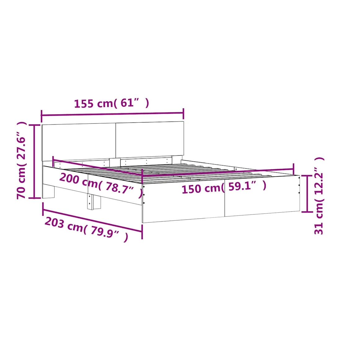 - Dimensions du matelas correspondant : 150 x 200 cm (l x L) (matelas non inclus)