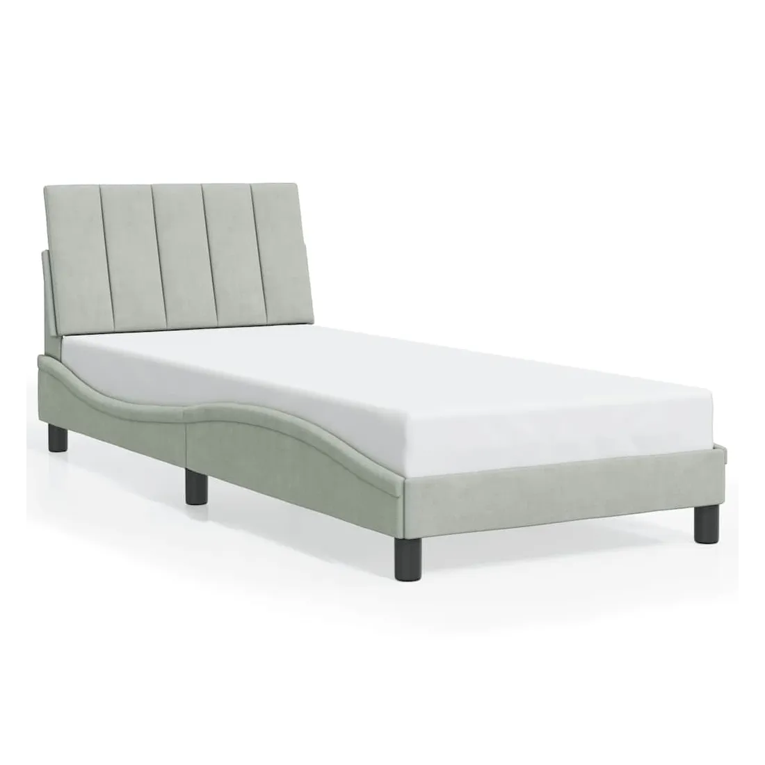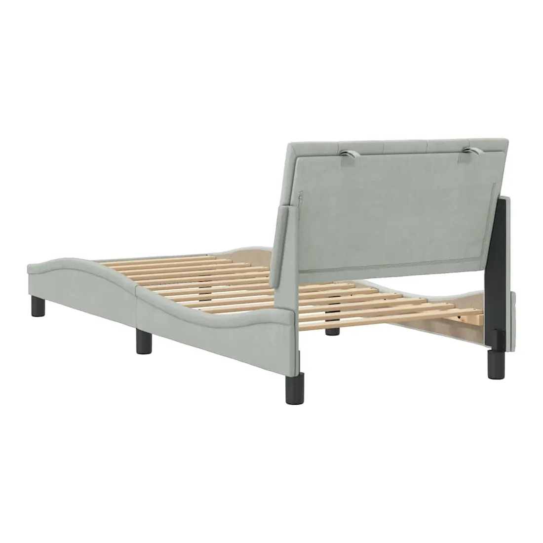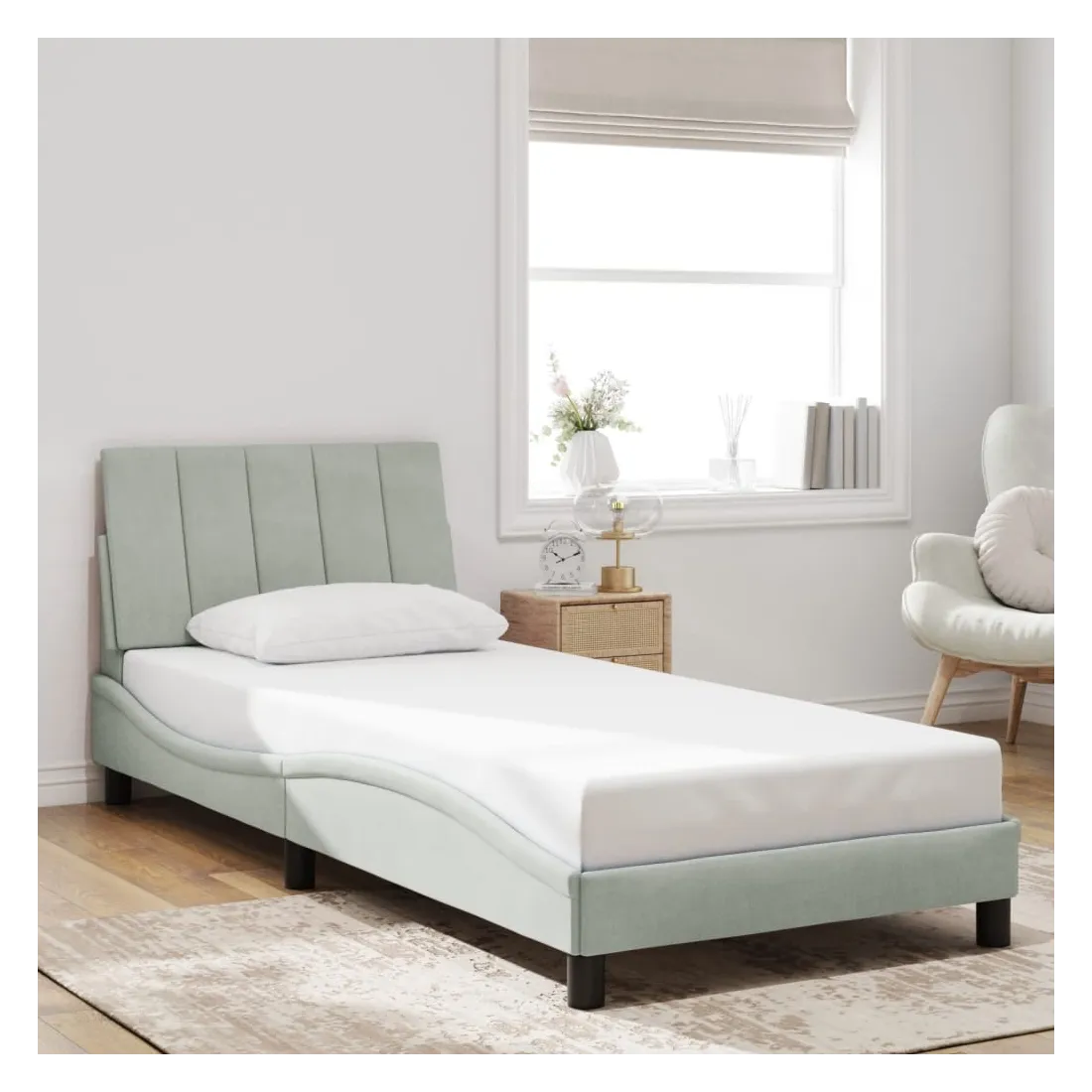 Obtenez une meilleure nuit de sommeil reposante grâce à ce cadre de lit avec tête de lit ! Il est un supplément accueillant à toute chambre à coucher. Velours doux : le velours est un tissu doux et confortable, agréable au toucher.Lattes de contreplaqué : les lattes de contreplaqué assurent une bonne répartition du poids, garantissant que le matelas reste en place à chaque torsion de votre corps pendant le sommeil.Excellent soutien : l'oreiller de tête de lit est rembourré avec de la mousse pour un confort ultra doux et optimal vous offre un excellent soutien du dos lorsque vous êtes assis dans votre lit pour lire ou regarder la télévision.Design pratique : le coussin de la tête de lit est doté d'une fermeture à glissière pour faciliter l'installation, et les bandes auto-agrippantes au dos peuvent être utilisées pour fixer les lampes LED.Design latéral ondulé : l’aspect ondulé du cadre de lit est élégant et sophistiqué, ajoutant une touche moderne et élégante à votre décor, ce qui en fait le point central de votre chambre à coucher. Bon à savoir :Un matelas n'est pas inclus avec ce lit. Nous offrons une sélection variée de matelas. Vous pouvez consulter notre boutique pour trouver un matelas assorti.