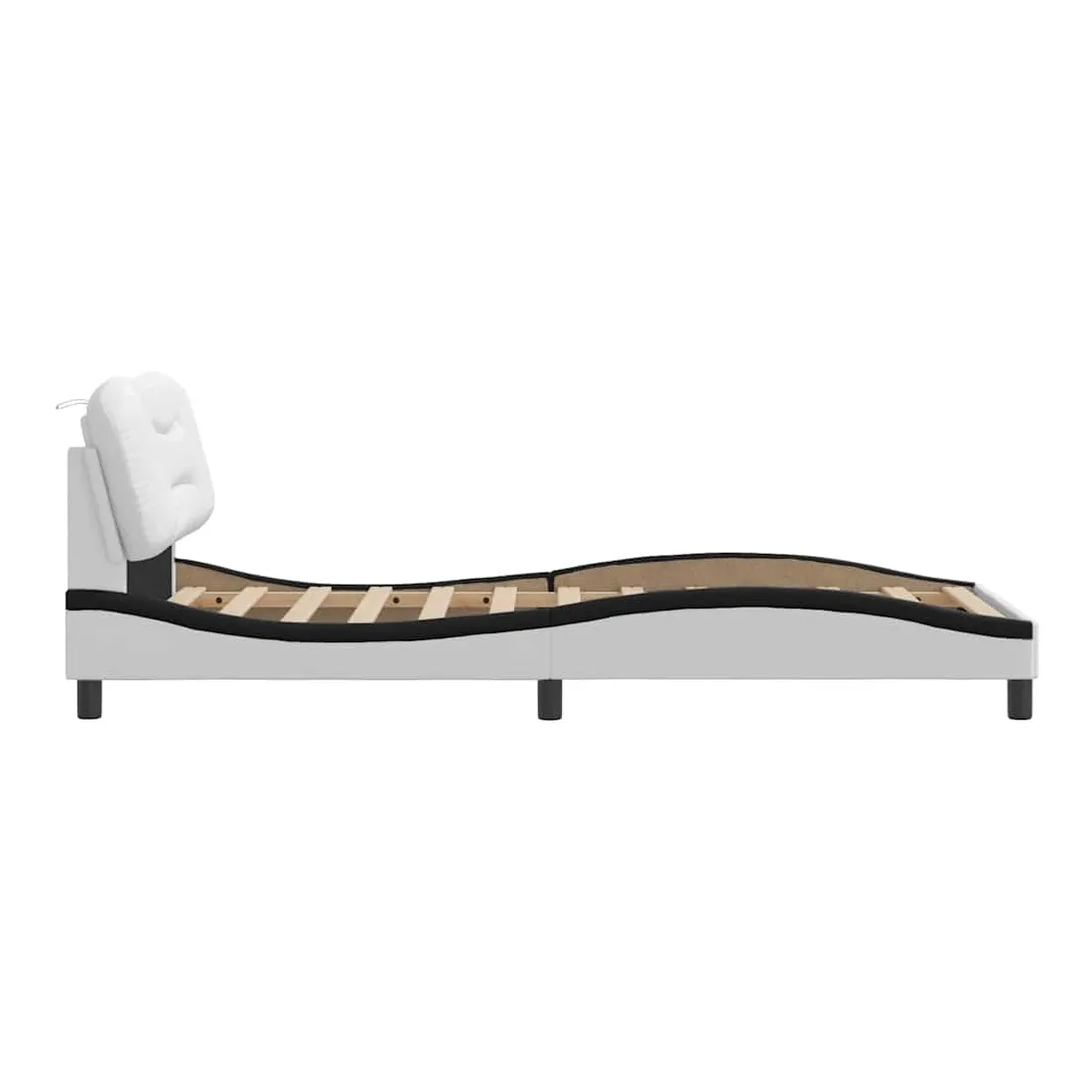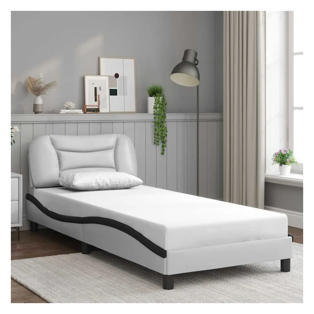 Obtenez une meilleure nuit de sommeil reposante grâce à ce cadre de lit avec tête de lit ! Il est un supplément accueillant à toute chambre à coucher. Similicuir durable : le similicuir de qualité supérieure est un matériau très durable. Il est résistant aux taches, ce qui le rend facile à nettoyer avec un chiffon humide. La surface lisse donne également un aspect luxueux et la beauté du cuir véritable.Lattes de contreplaqué : les lattes de contreplaqué assurent une bonne répartition du poids, garantissant que le matelas reste en place à chaque torsion de votre corps pendant le sommeil.Excellent soutien : l'oreiller de tête de lit est rembourré avec de la fibre de polypropylène pour un confort ultra doux et optimal vous offre un excellent soutien du dos lorsque vous êtes assis dans votre lit pour lire ou regarder la télévision.Design latéral ondulé : l’aspect ondulé du cadre de lit est élégant et sophistiqué, ajoutant une touche moderne et élégante à votre décor, ce qui en fait le point central de votre chambre à coucher. Bon à savoir :Un matelas n'est pas inclus avec ce lit. Nous offrons une sélection variée de matelas. Vous pouvez consulter notre boutique pour trouver un matelas assorti.