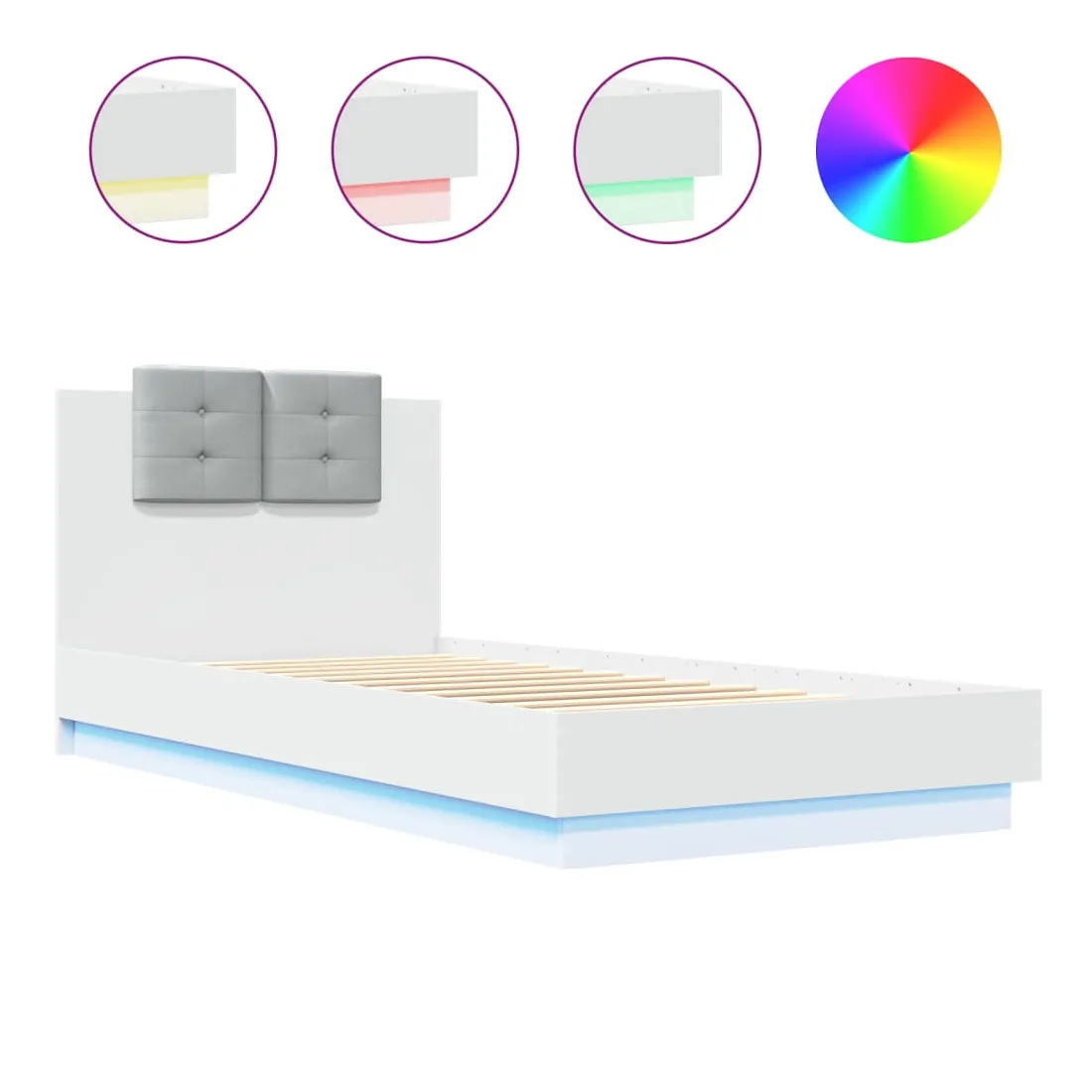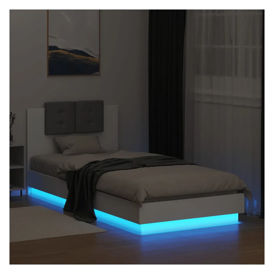 Obtenez une meilleure nuit de sommeil reposante grâce à ce cadre de lit avec tête de lit et lumières LED ! Il est un supplément accueillant à toute chambre à coucher. Matériau durable : le bois d'ingénierie est d'une qualité exceptionnelle avec une surface lisse et présente également résistance, stabilité et résistance à l'humidité.Lumières LED RVB : le cadre de lit est équipé de lumières LED RVB vibrantes. Avec divers menus personnalisables, vous pouvez changer sans effort la couleur des lumières et même les régler automatiquement. Ces lumières LED renforcent non seulement l'aspect contemporain du sommier, mais ajoutent également à son attrait tendance.Excellent soutien : la tête de lit vous offre un excellent soutien du dos lorsque vous êtes assis dans votre lit pour lire ou regarder la télévision.Lattes robustes : les lattes de contreplaqué assurent une bonne répartition du poids, garantissant que le matelas reste en place à chaque torsion de votre corps pendant le sommeil. Bon à savoir :Un matelas n'est pas inclus avec ce lit. Nous offrons une sélection variée de matelas. Vous pouvez consulter notre boutique pour trouver un matelas assorti.Ce produit est doté d'un connecteur USB qui nécessite une source d'alimentation USB de 5V certifiée (non incluse).
