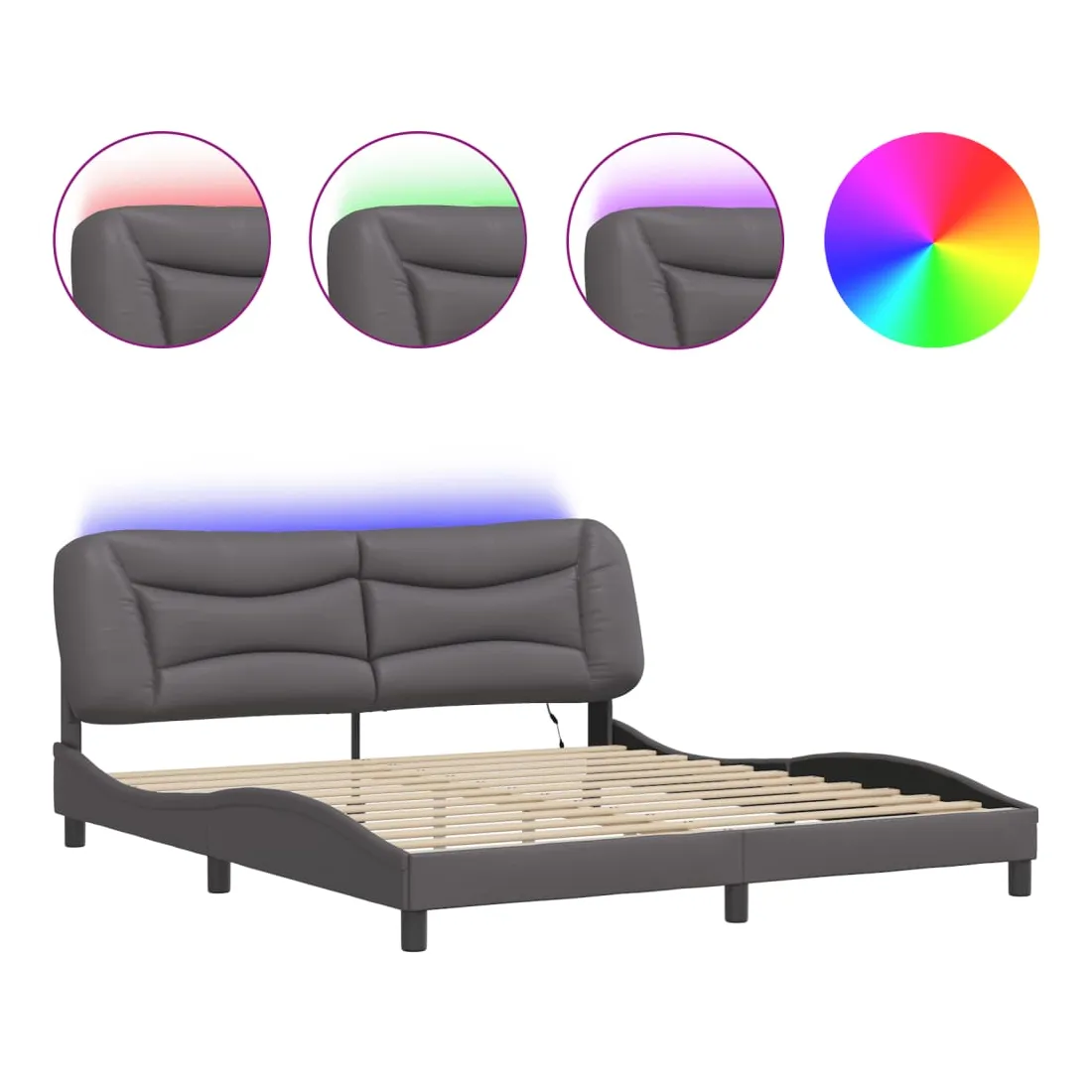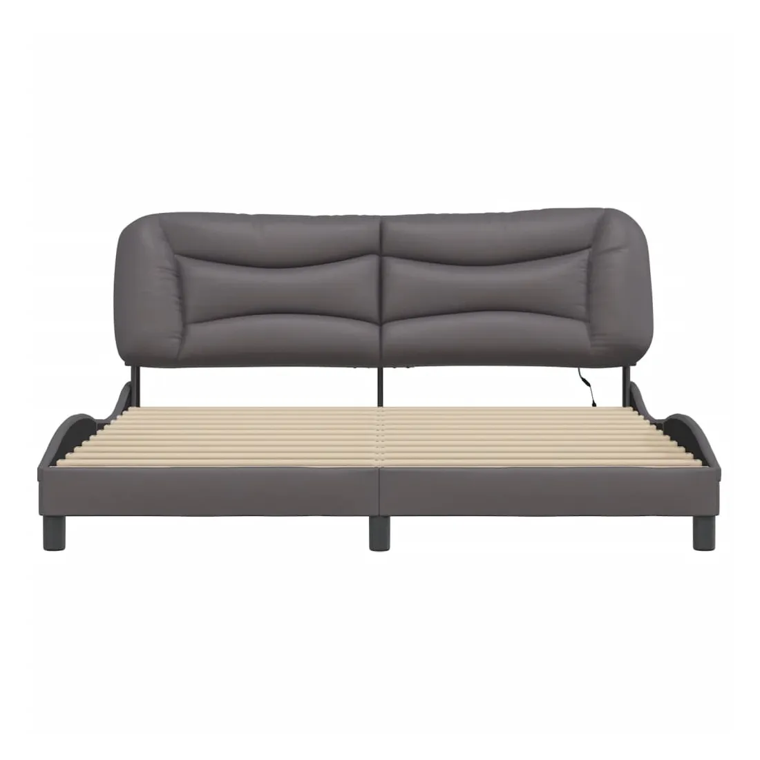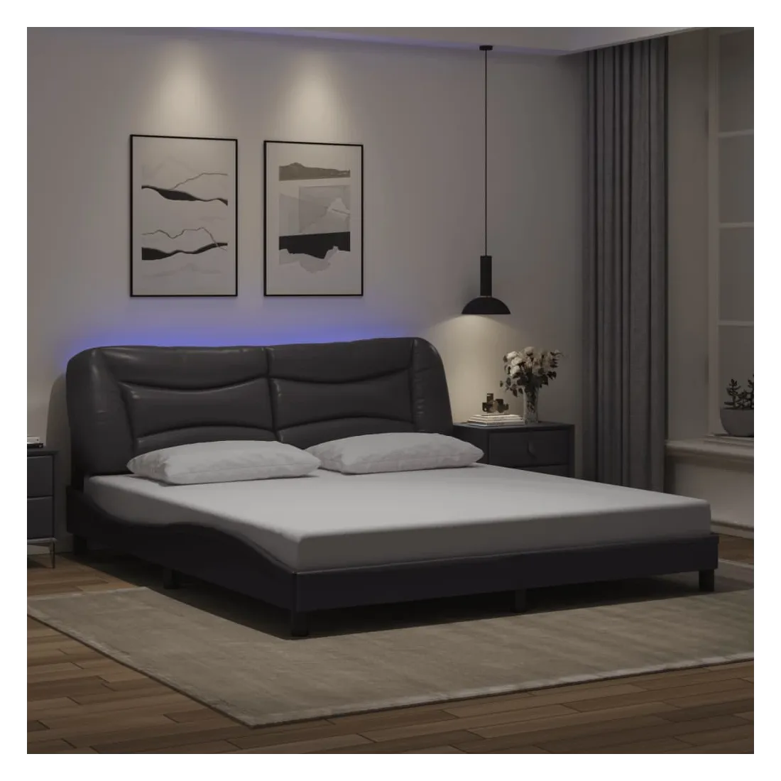 Obtenez une meilleure nuit de sommeil reposante grâce à ce cadre de lit avec lumières LED ! Il est un supplément accueillant à toute chambre à coucher. Similicuir durable : le similicuir de qualité supérieure est un matériau très durable. Il est résistant aux taches, ce qui le rend facile à nettoyer avec un chiffon humide. La surface lisse donne également un aspect luxueux et la beauté du cuir véritable.Lattes de contreplaqué : les lattes de contreplaqué assurent une bonne répartition du poids, garantissant que le matelas reste en place à chaque torsion de votre corps pendant le sommeil.Excellent soutien : la tête de lit vous offre un excellent soutien du dos lorsque vous êtes assis dans votre lit pour lire ou regarder la télévision.Bande LED colorée : apportez de la gaieté dans l'obscurité avec des lumières LED colorées ! Les bandes auto-agrippantes situées à l'arrière du coussin de la tête de lit peuvent être utilisées pour fixer les lumières LED.Design latéral ondulé : l’aspect ondulé du cadre de lit est élégant et sophistiqué, ajoutant une touche moderne et élégante à votre décor, ce qui en fait le point central de votre chambre à coucher. Bon à savoir :Un matelas n'est pas inclus avec ce lit. Nous offrons une sélection variée de matelas. Vous pouvez consulter notre boutique pour trouver un matelas assorti.Ce produit est doté d'un connecteur USB qui nécessite une source d'alimentation USB de 5V certifiée (non incluse).