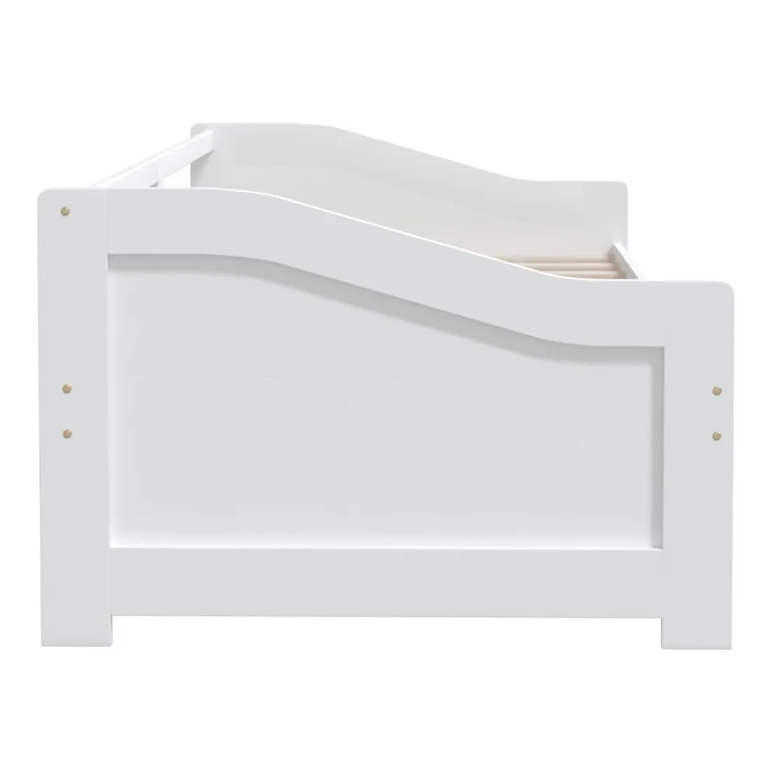 Le lit en bois multifonctionnel peut être utilisé comme un canapé pendant la journée, ou comme un lit pendant la nuit pour offrir une solution rapide pour accueillir des invités pour la nuit. Ce canapé-lit pratique saura attirer tous les regards, où qu'il sera placé ! Le canapé-lit est fait de bois de pin massif, ce qui le rend robuste et stable. Les lattes robustes offrent également le soutien et le confort nécessaires. Remarque : la livraison comprend uniquement un cadre de lit de jour. Le matelas n'est pas inclus. Vous pouvez consulter notre boutique pour trouver les matelas assortis.