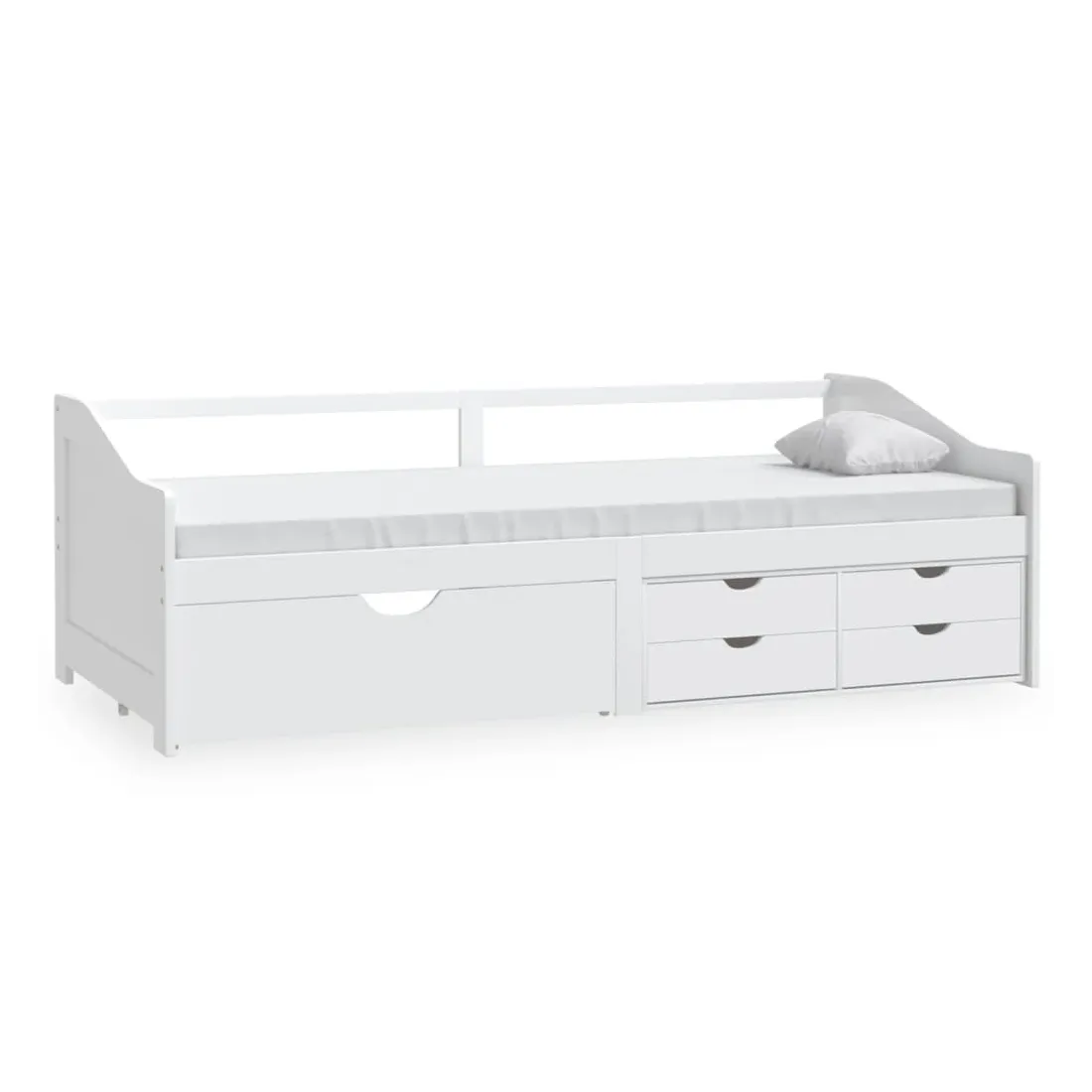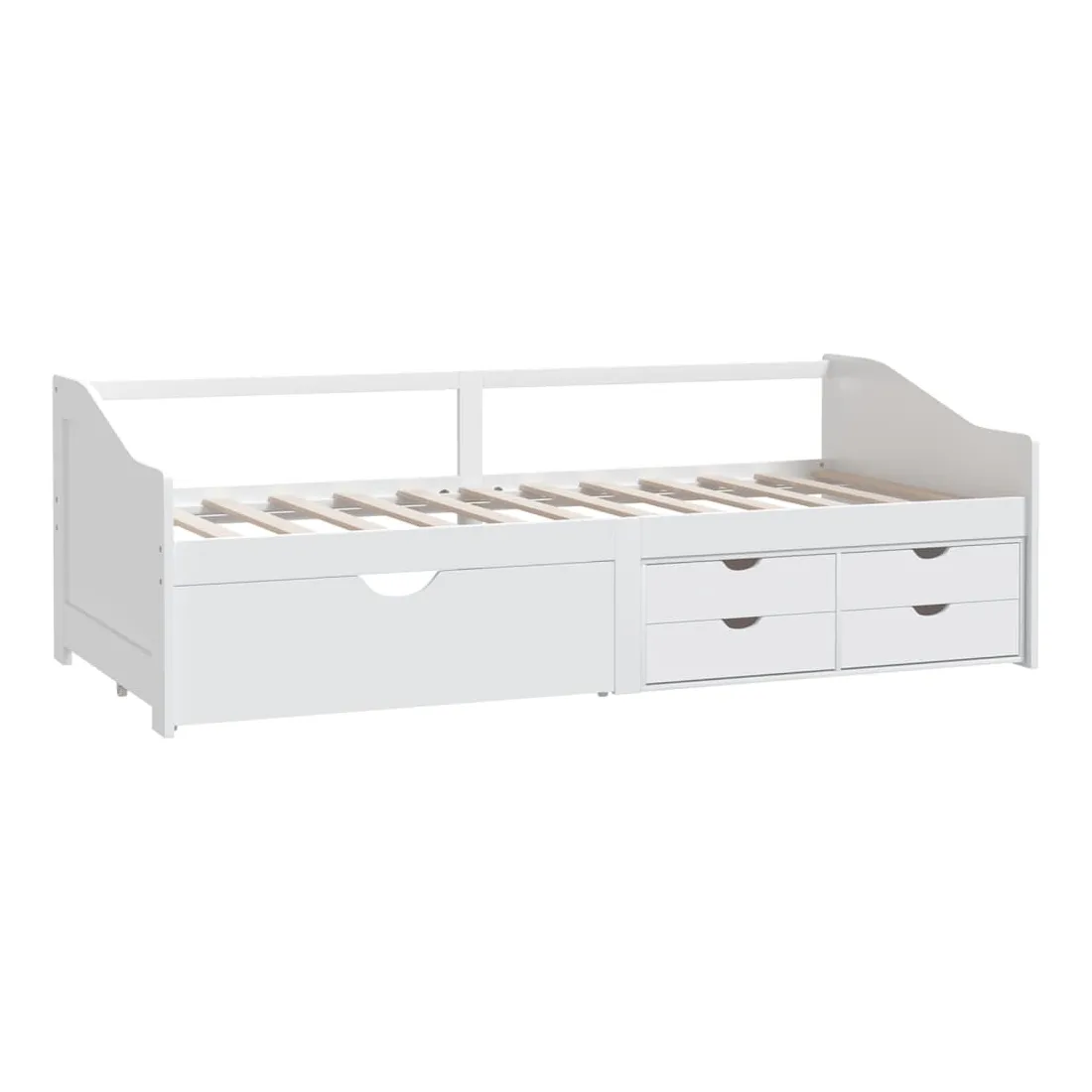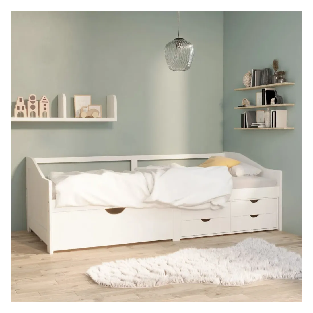 Le lit en bois multifonctionnel peut être utilisé comme un canapé pendant la journée, ou comme un lit pendant la nuit pour offrir une solution rapide pour accueillir des invités pour la nuit. Ce canapé-lit pratique saura attirer tous les regards, où qu'il sera placé ! Le canapé-lit est fabriqué en bois de pin massif, ce qui le rend robuste et stable. Les lattes robustes offrent également le soutien et le confort nécessaires. De plus, il comprend également 5 tiroirs de lit pour ranger les vêtements pliés, les jouets, etc. Remarque : la livraison comprend uniquement un cadre de lit de jour. Le matelas n'est pas inclus. Vous pouvez consulter notre boutique pour trouver les matelas assortis.