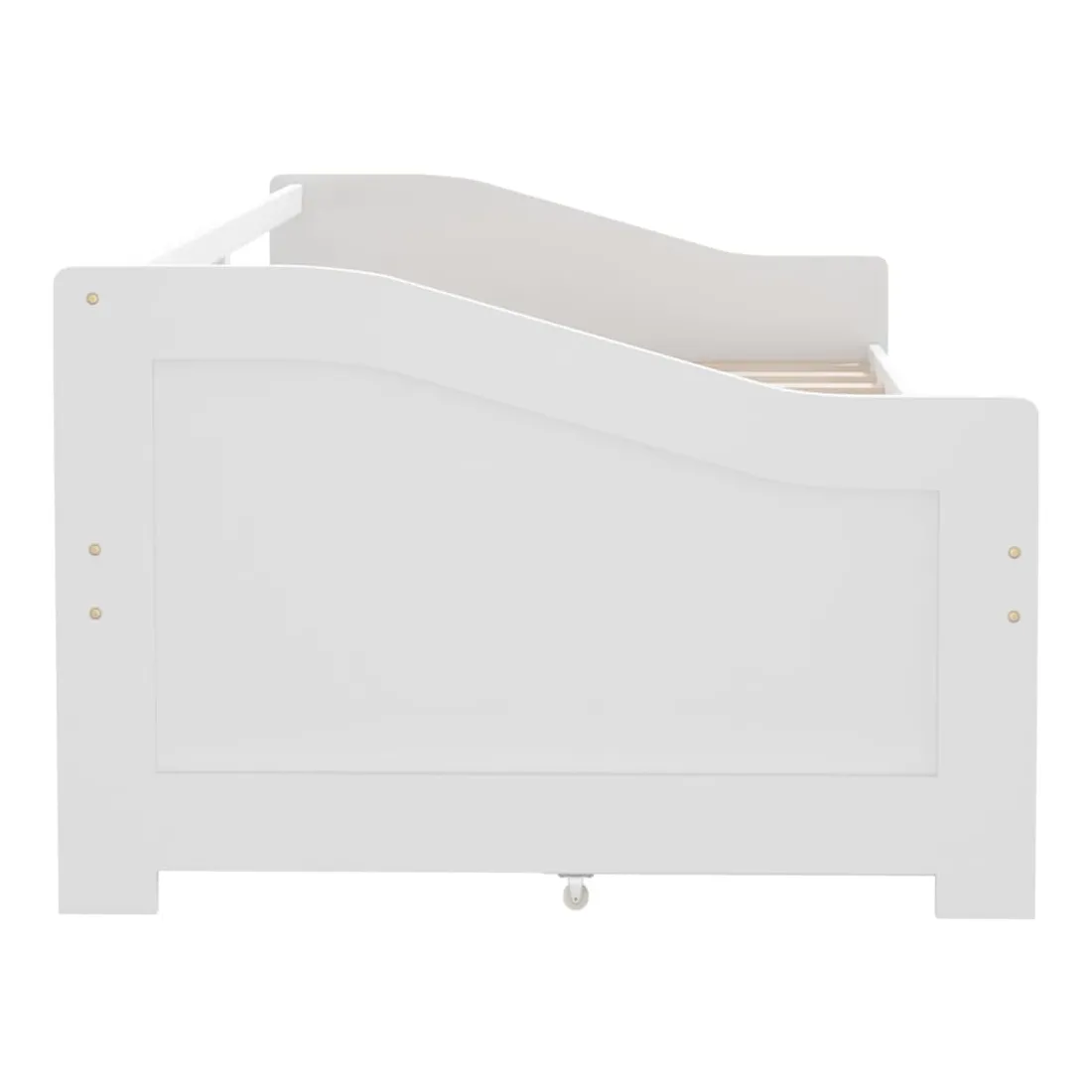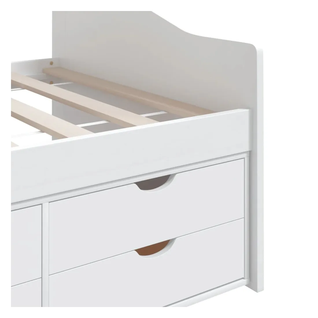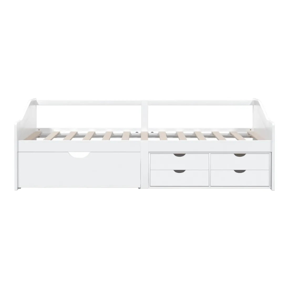 Le lit en bois multifonctionnel peut être utilisé comme un canapé pendant la journée, ou comme un lit pendant la nuit pour offrir une solution rapide pour accueillir des invités pour la nuit. Ce canapé-lit pratique saura attirer tous les regards, où qu'il sera placé ! Le canapé-lit est fabriqué en bois de pin massif, ce qui le rend robuste et stable. Les lattes robustes offrent également le soutien et le confort nécessaires. De plus, il comprend également 5 tiroirs de lit pour ranger les vêtements pliés, les jouets, etc. Remarque : la livraison comprend uniquement un cadre de lit de jour. Le matelas n'est pas inclus. Vous pouvez consulter notre boutique pour trouver les matelas assortis.