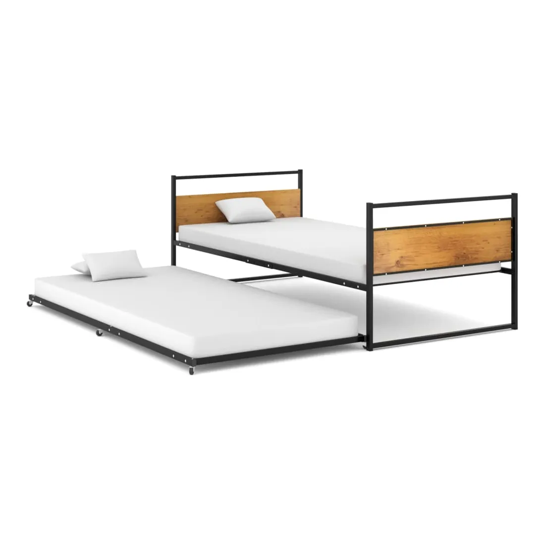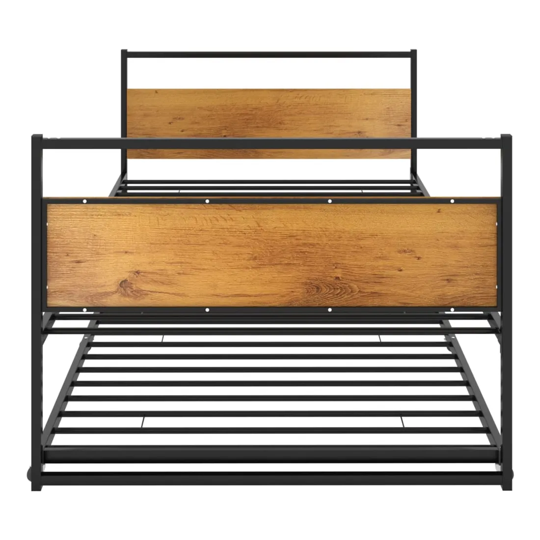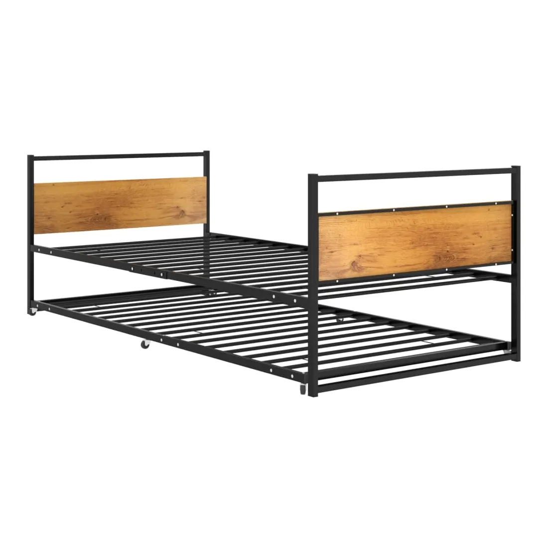 Profitez d’une bonne nuit de sommeil dans ce cadre de lit extensible multifonctionnel ! Doté d'un lit inférieur coulissant équipé de 6 roues en plastique, il peut être facilement caché lorsqu'il n’est pas utilisé. Ce cadre de lit en métal maximise l'espace disponible au sol tout en offrant de l'espace pour deux personnes, ce qui en fait un choix idéal pour les personnes ayant un espace de vie limité. Le lit a une construction solide en métal enduit de poudre et en MDF, ce qui le rend extrêmement robuste et durable. Les lattes robustes offrent le soutien et le confort nécessaires. Vous pouvez profiter d'une grande expérience de sommeil chaque nuit dans ce lit ! Veuillez noter que la livraison comprend le cadre de lit uniquement. Les matelas ne sont pas inclus. Vous pouvez consulter notre boutique pour les matelas assortis.