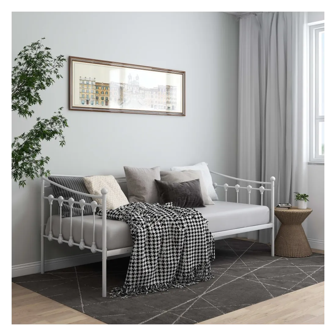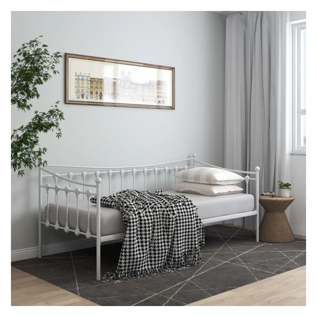 Ce canapé-lit élégant est censé être une solution parfaite pour accueillir des invités inattendus pendant la nuit tout en offrant un espace confortable pendant la journée. Vous pouvez facilement convertir ce meuble en un canapé pendant la journée et en un lit confortable la nuit. Le cadre du lit de jour maximise l’espace disponible au sol tout en offrant un espace de couchage, ce qui en fait un choix idéal pour les personnes ayant un espace de vie limité. De plus, le lit d'appoint est équipé d’une barrière latérale qui empêche l’utilisateur de rouler tout en dormant. Le cadre de lit entier a une construction métallique robuste, ce qui le rend très durable, et adapté à une utilisation quotidienne. Veuillez noter que la livraison comprend le cadre de lit uniquement. Les matelas ne sont pas inclus. Vous pouvez consulter notre boutique pour les matelas assortis.