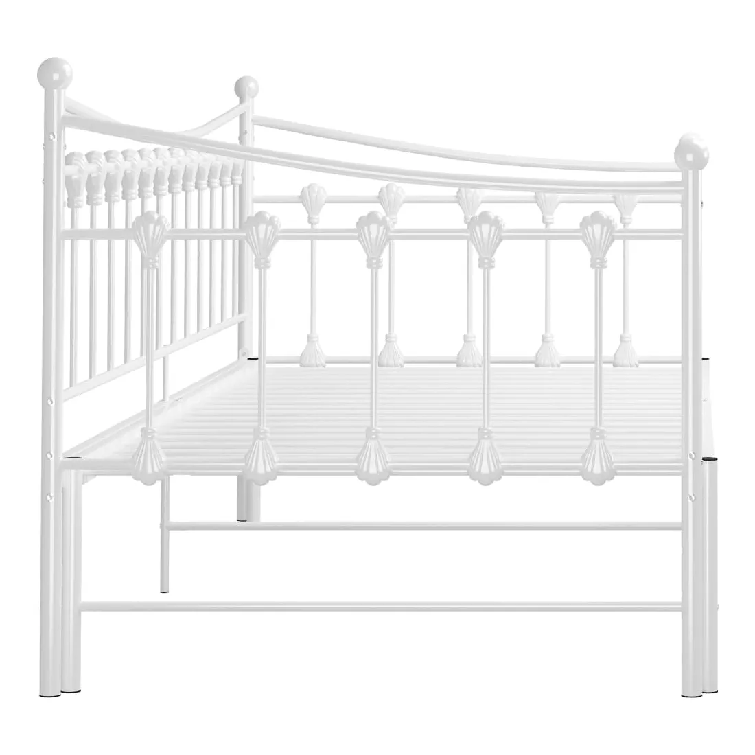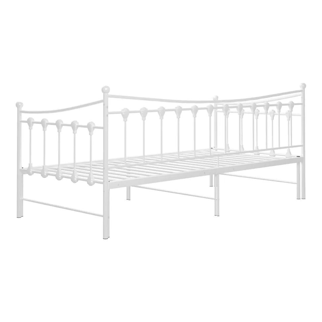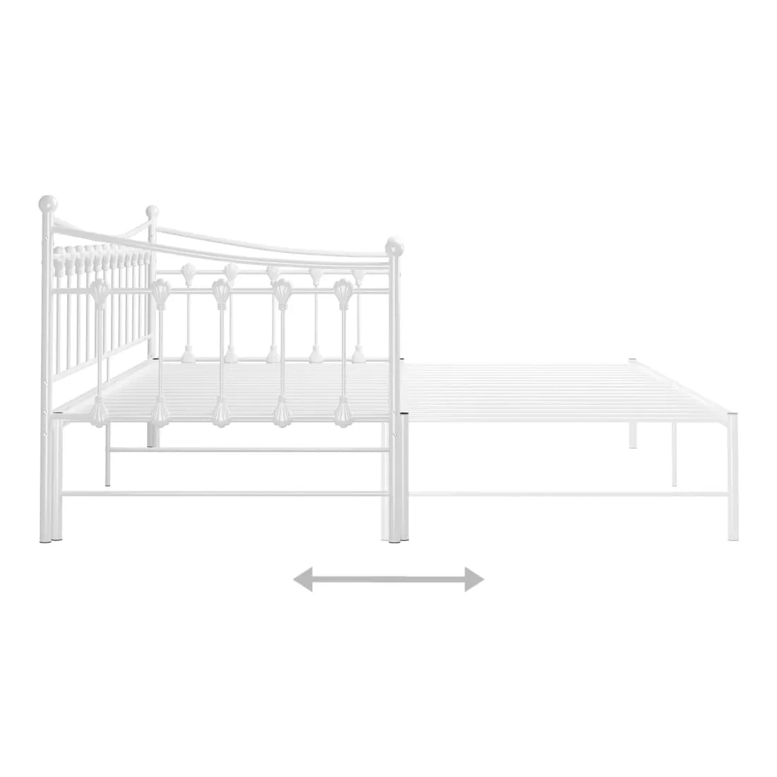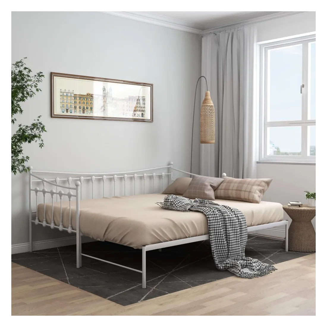 Ce canapé-lit polyvalent sera parfait pour accueillir des invités inattendus pour la nuit, tout en offrant un espace de siège confortable pendant la journée. Vous pouvez facilement convertir ce meuble en un canapé pendant la journée et en un lit confortable la nuit. Le cadre du lit de jour maximise l’espace disponible au sol tout en offrant un espace de couchage pour deux personnes, ce qui en fait un choix idéal pour les personnes ayant un espace de vie limité. De plus, le lit de nuit est équipé d’une balustrade latérale qui empêche l’utilisateur de rouler tout en dormant. Le cadre de lit entier a une construction métallique robuste, ce qui le rend très durable, et adapté pour une utilisation quotidienne. Veuillez noter que la livraison comprend le cadre de lit uniquement. Les matelas ne sont pas inclus. Vous pouvez consulter notre boutique pour les matelas assortis.