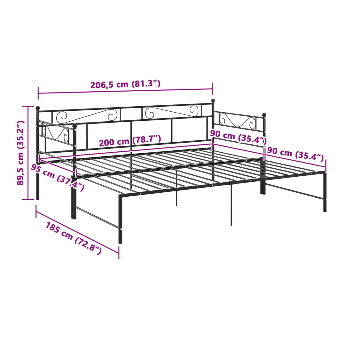 - Dimensions du lit (lorsqu'il n'est pas étendu) : 206,5 x 95 x 89,5 cm (L x l x H)