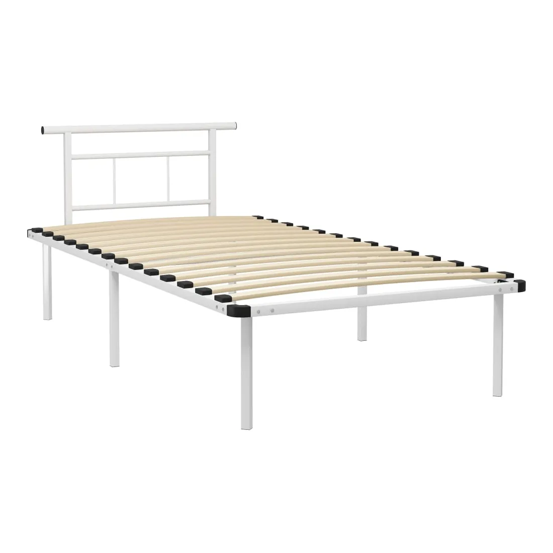 Donnez un aspect élégant et classique à votre chambre à coucher avec ce cadre de lit en métal ! Le cadre de lit a une construction solide en métal. Les lattes de contreplaqué robustes offrent le soutien nécessaire. Le lit est adapté à un matelas de 100 x 200 cm. Veuillez noter que la livraison inclut un cadre de lit seulement ; un matelas n'est pas inclus. Vous pouvez chercher le matelas correspondant dans notre boutique.