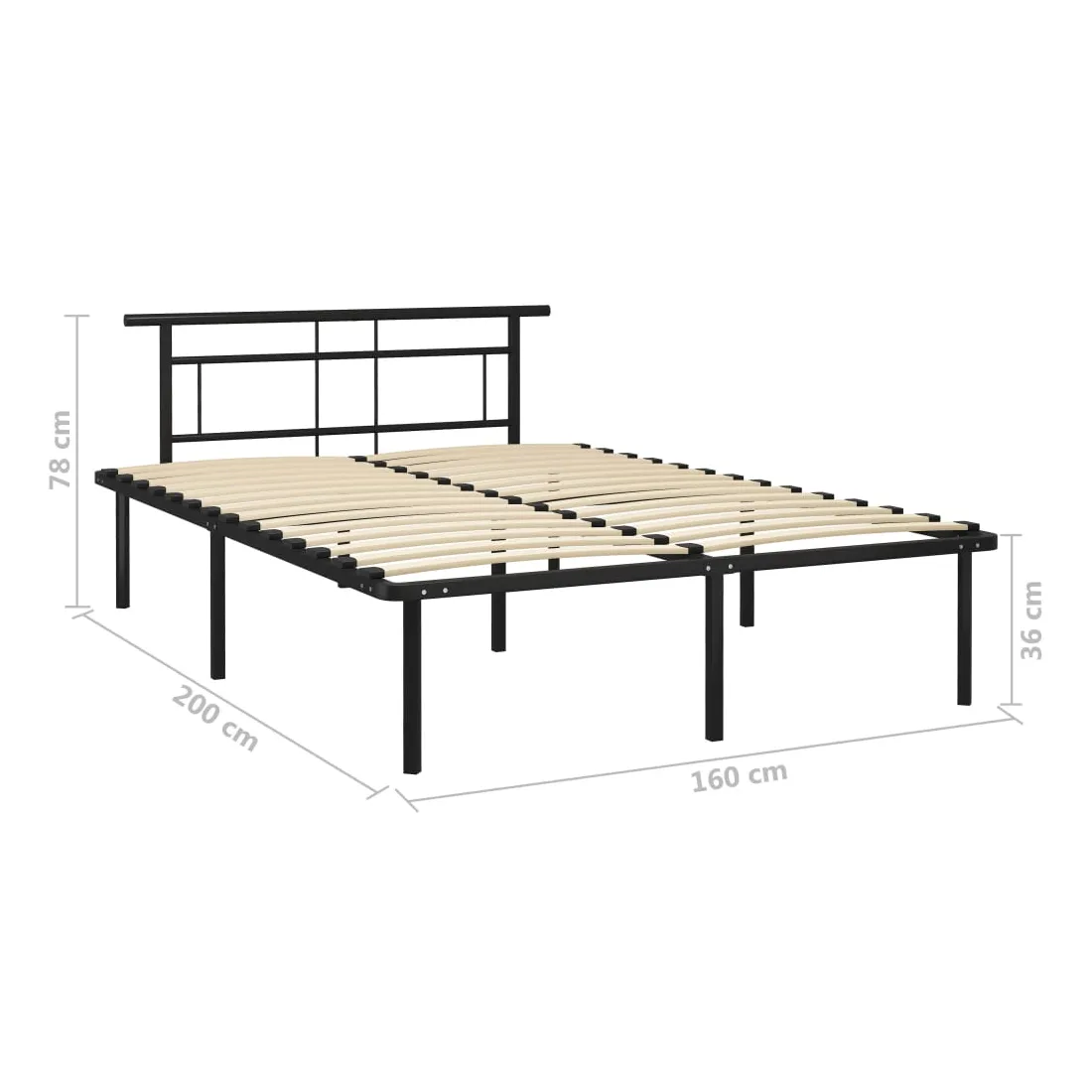 Donnez un aspect élégant et classique à votre chambre à coucher avec ce cadre de lit en métal ! Le cadre de lit a une construction solide en métal. Les lattes de contreplaqué robustes offrent le soutien nécessaire. Le lit est adapté à un matelas de 160 x 200 cm. Veuillez noter que la livraison inclut un cadre de lit seulement ; un matelas n'est pas inclus. Vous pouvez chercher le matelas correspondant dans notre boutique.