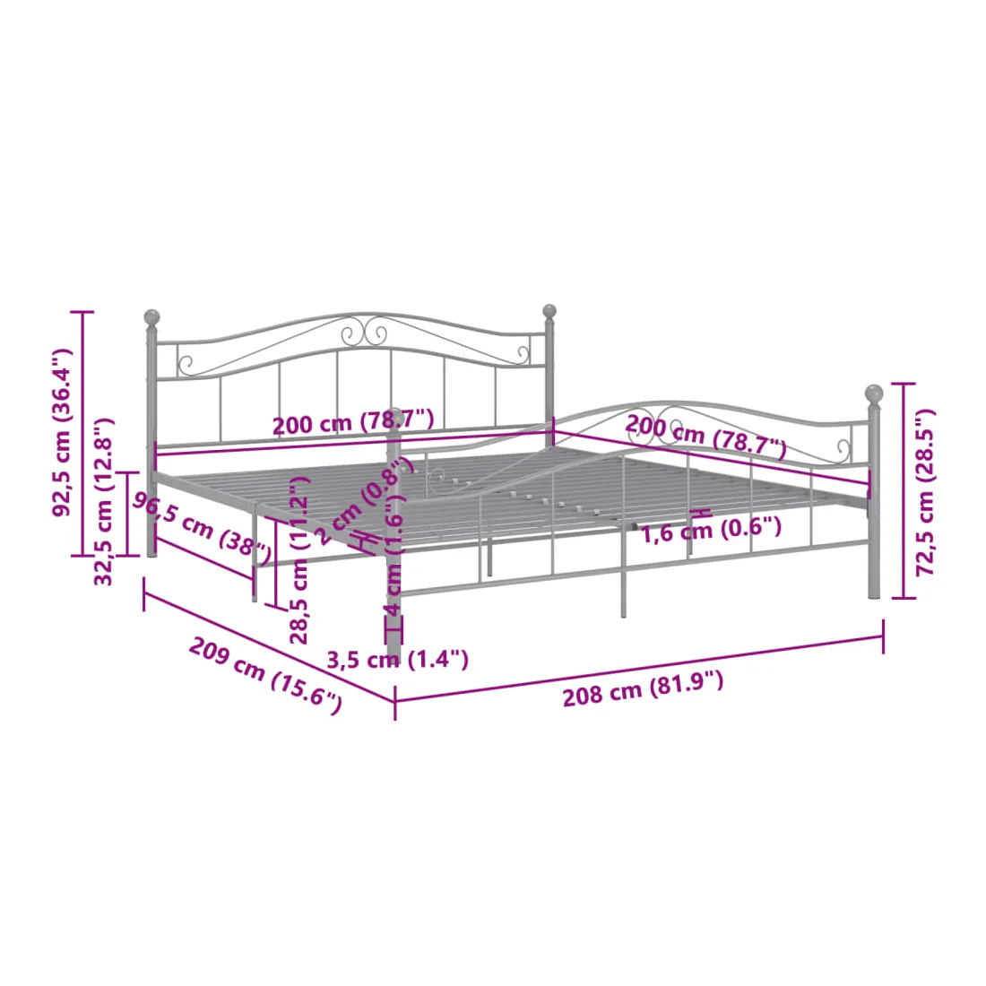 - Dimensions du matelas correspondant : 200 x 200 cm (l x L) (matelas non inclus)