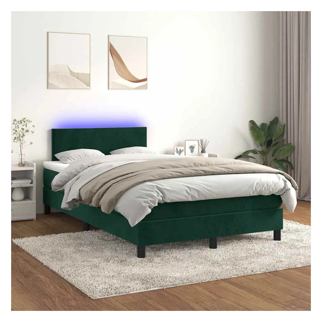 Utilisez ce sommier tapissier avec matelas et LED pour profiter d'un sommeil réparateur ! C'est le point central de votre chambre à coucher. Velours doux : le velours est un tissu doux et luxueux qui se reconnaît à son tas dense de fibres uniformément coupées qui ont une touche lisse. Le tissu en velours présente un toucher doux distinctif, ce qui le rend confortable au toucher.Tête de lit pratique : la tête de lit est réglable en hauteur selon vos préférences. La tête de lit vous offre un excellent soutien du dos lorsque vous êtes assis dans votre lit pour lire ou regarder la télévision.Bande LED colorée : apportez de l'éclairage dans l'obscurité avec des lumières LED colorées !Matelas à ressorts ensachés : le ressort ensaché individuel intégré est connu pour sa très haute qualité tout en assurant un haut niveau de durabilité et d'adaptabilité. Il peut absorber efficacement le bruit et les chocs causés par les sauts et les rotations.Protège-matelas doux pour la peau : le protège-matelas est recouvert d'un tissu résistant et doux pour la peau, ce qui le rend souple et confortable. Bon à savoir :Pour des raisons d'hygiène, le matelas ne peut pas être retourné si l'emballage est retiré ou ouvert.Seule la partie avec un symbole de ciseaux peut être coupée et seule la partie avec l'USB continuera à fonctionner comme avant.Ce produit est doté d'un connecteur USB qui nécessite une source d'alimentation USB de 5V certifiée (non incluse).