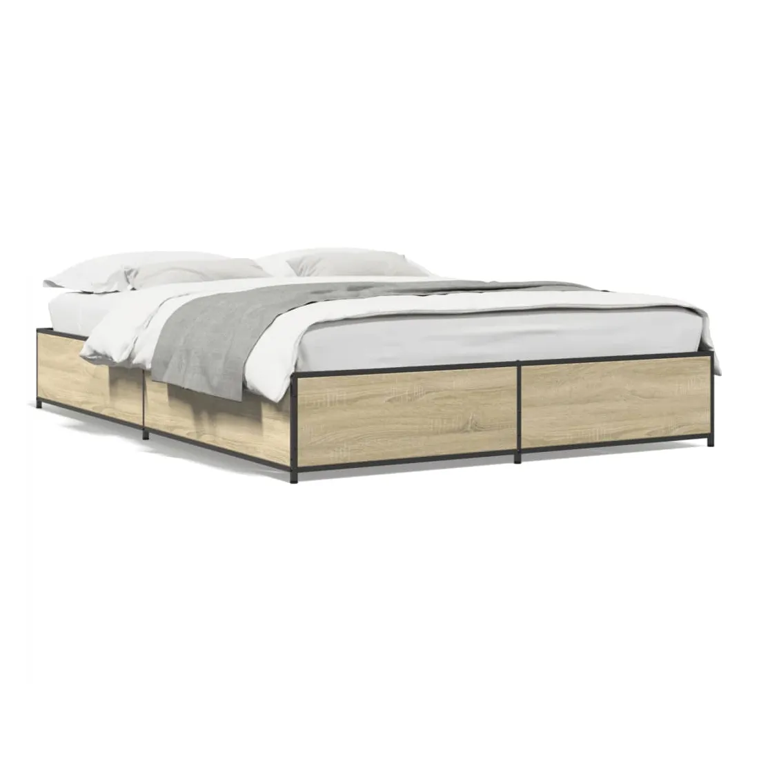 Obtenez une meilleure nuit de sommeil reposante grâce à ce cadre de lit ! Il est un supplément accueillant à toute chambre à coucher. Matériau durable : le bois d'ingénierie est d'une qualité exceptionnelle avec une surface lisse et présente également résistance, stabilité et résistance à l'humidité. Pieds en métal : le lit est soutenu par des pieds en métal robustes, qui assurent sa stabilité, sa sécurité et sa fermeté. Lattes de contreplaqué : les lattes de contreplaqué assurent une bonne répartition du poids, garantissant que le matelas reste en place à chaque torsion de votre corps pendant le sommeil. Bon à savoir : Un matelas n'est pas inclus avec ce lit. Nous offrons une sélection variée de matelas. Vous pouvez consulter notre boutique pour trouver un matelas assorti.