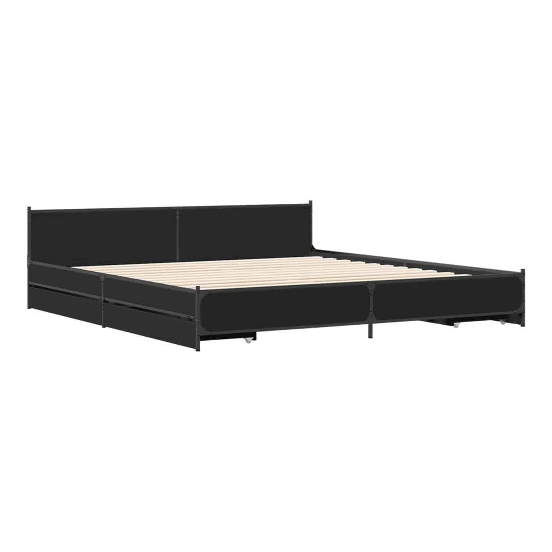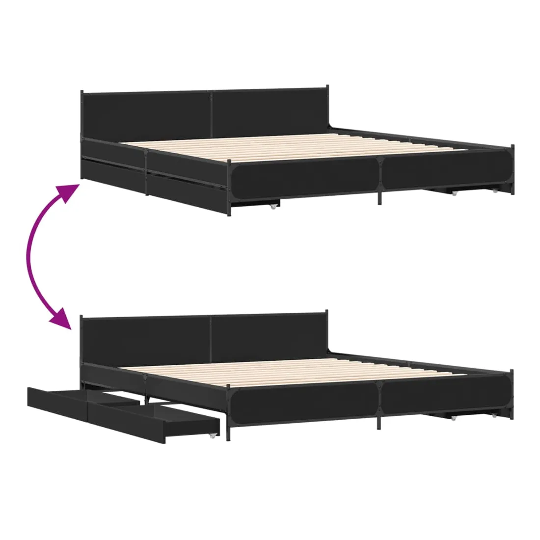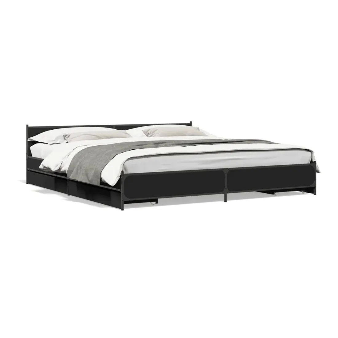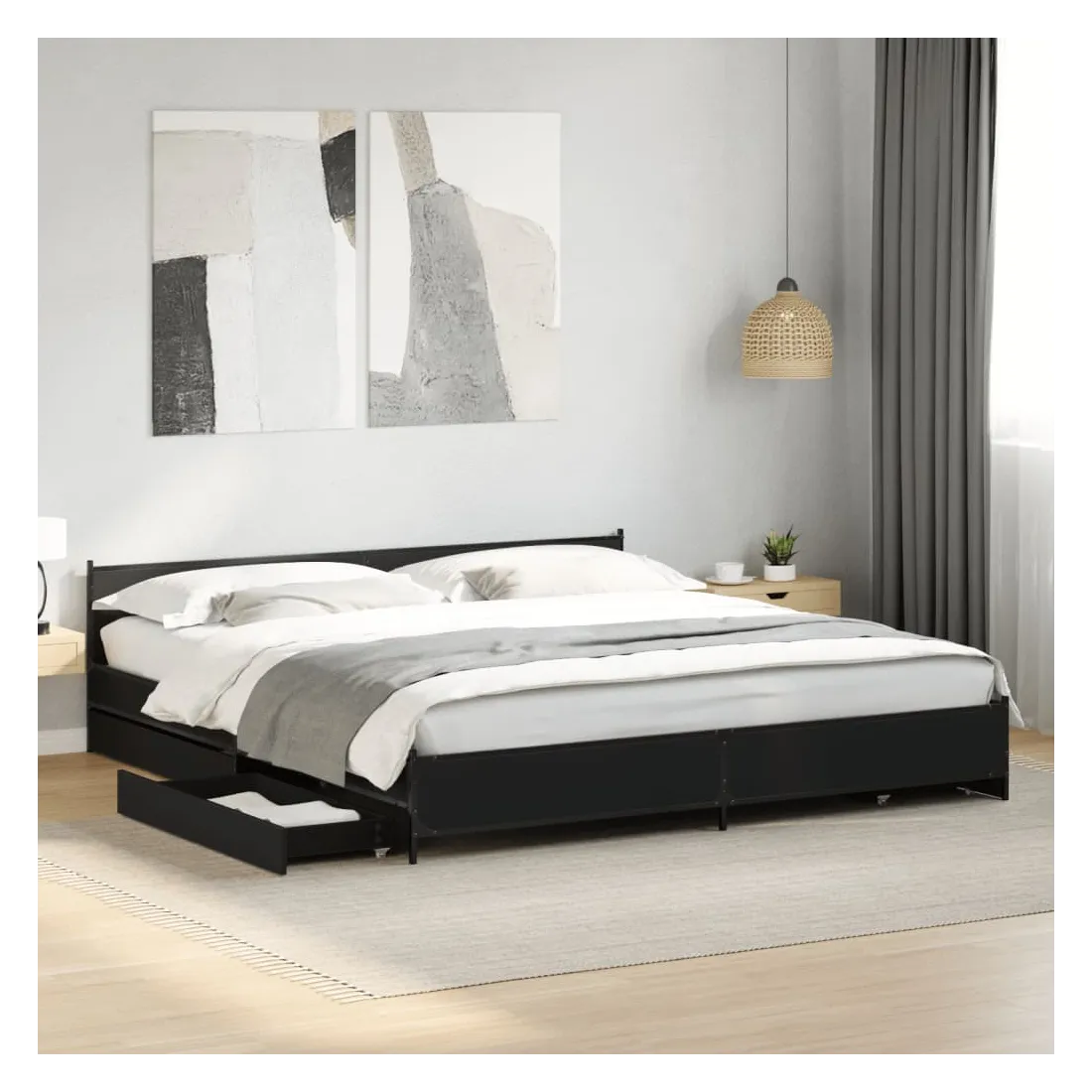 Cadre de lit avec tiroirs sans matelas noir 200x200 cm