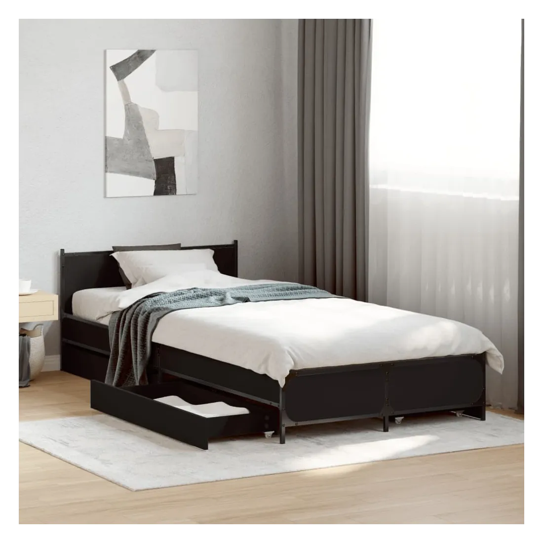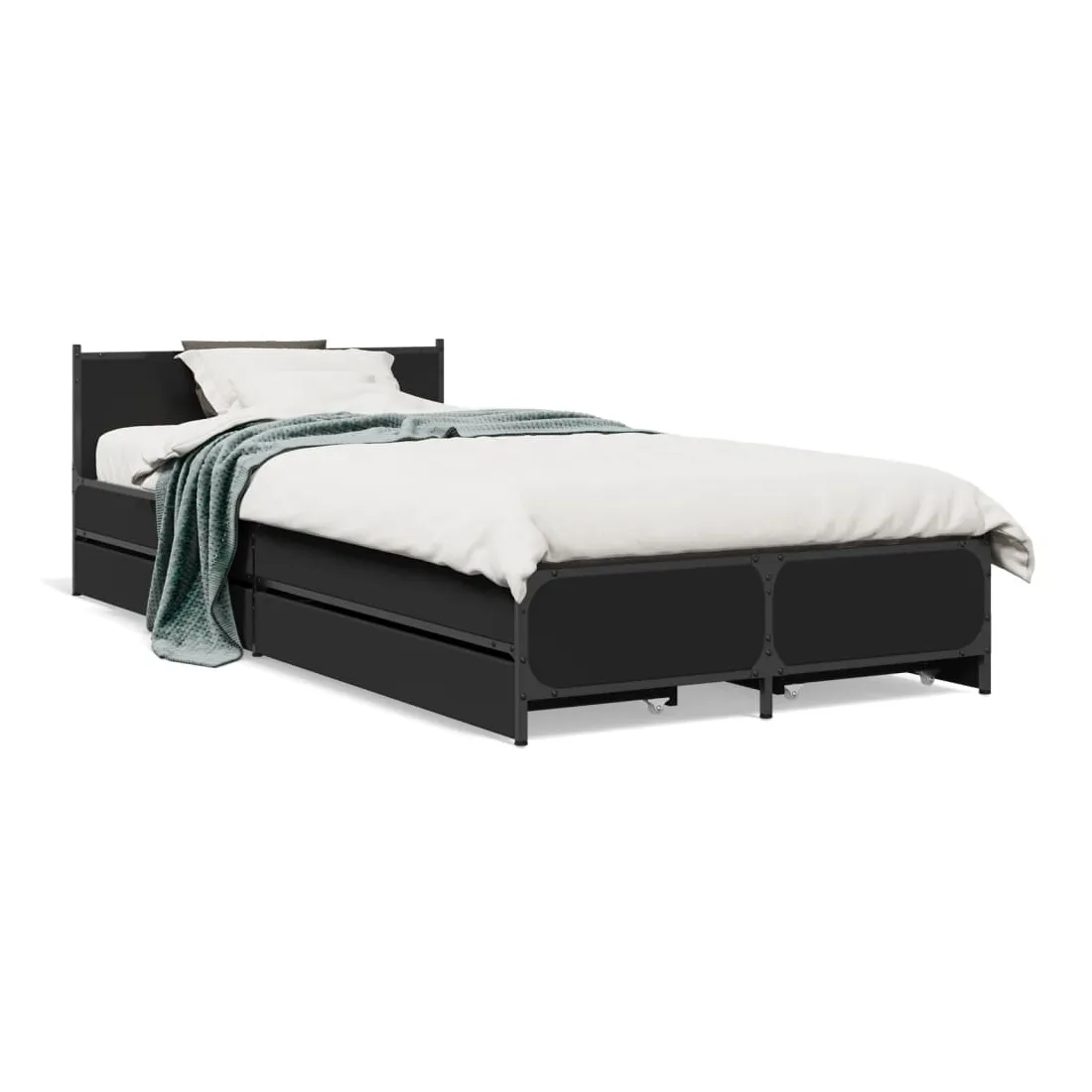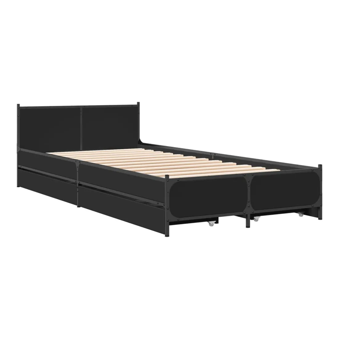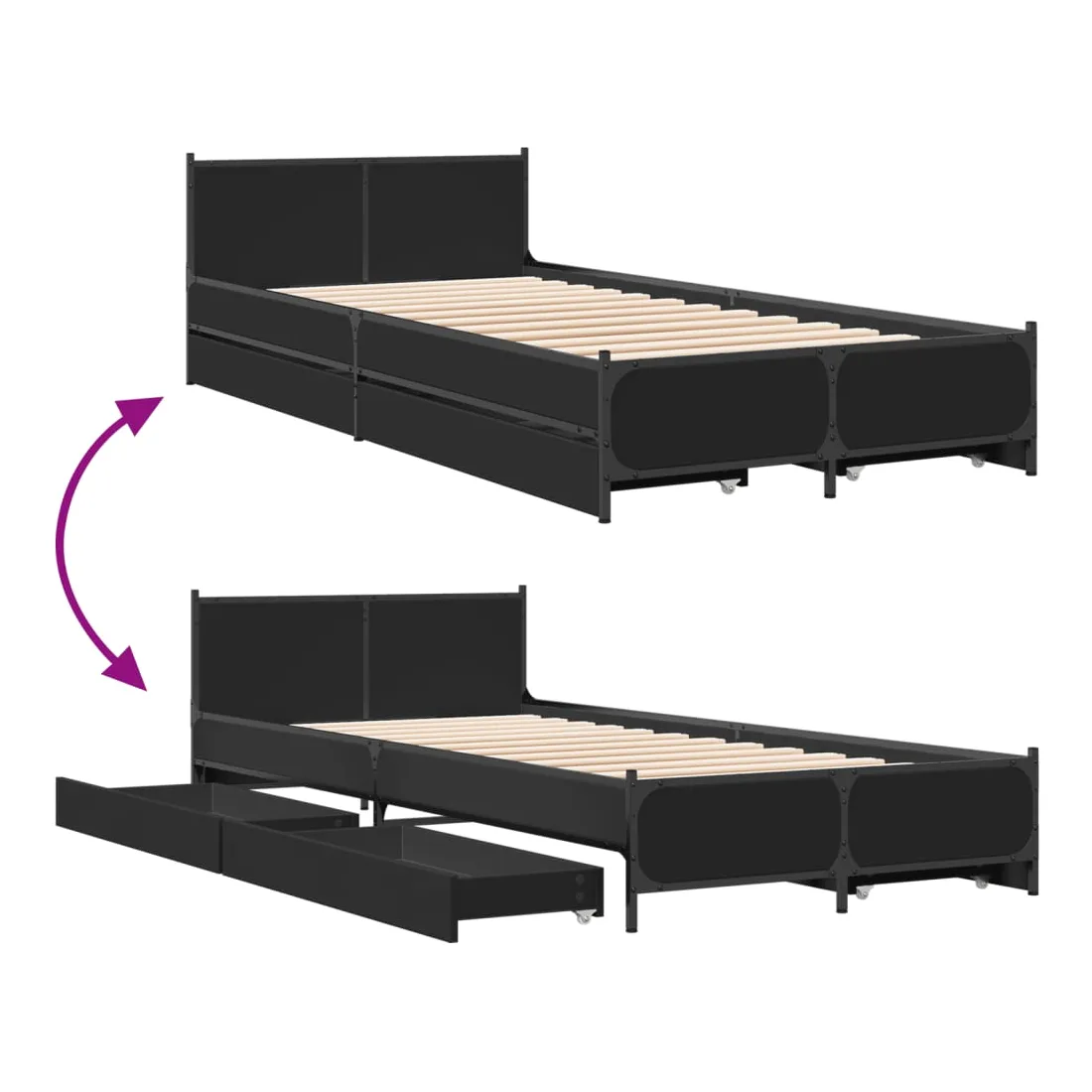 Cadre de lit avec tiroirs sans matelas noir 90x200 cm