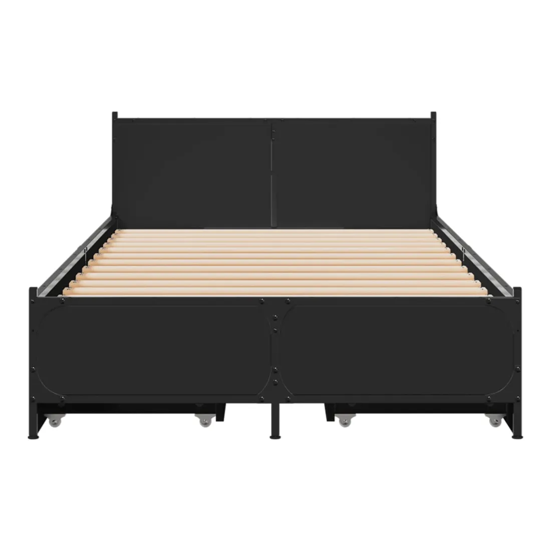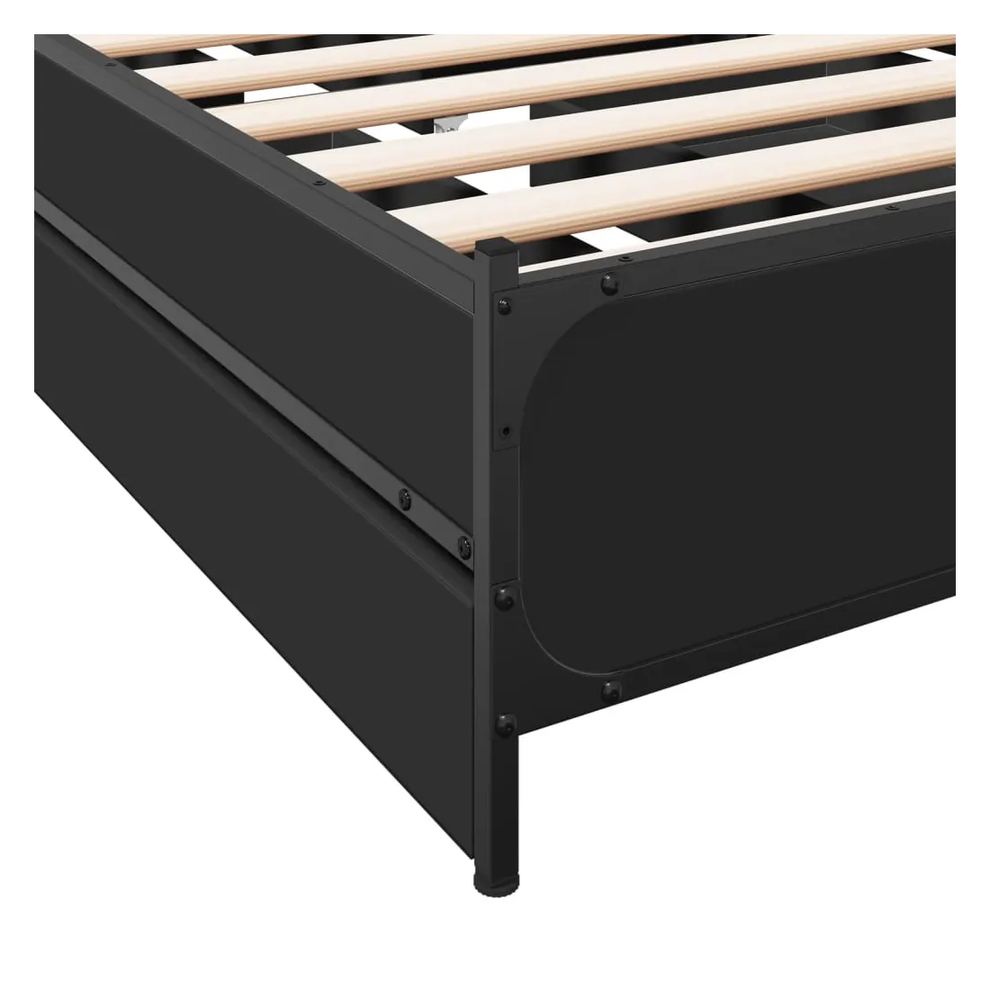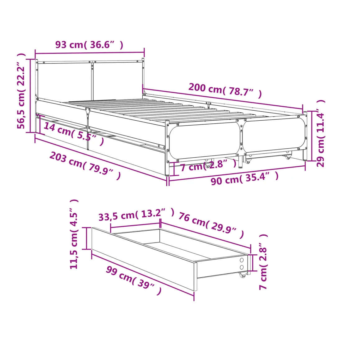 vidaXLObtenez une meilleure nuit de sommeil reposante grâce à ce cadre de lit avec tiroirs ! Il est un supplément accueillant à toute chambre à coucher. Matériau durable : le bois d'ingénierie est d'une qualité exceptionnelle avec une surface lisse et présente également résistance, stabilité et résistance à l'humidité. Pieds en métal : le lit est soutenu par des pieds en métal robustes, qui assurent sa stabilité, sa sécurité et sa fermeté. Lattes de contreplaqué : les lattes de contreplaqué assurent une bonne répartition du poids, garantissant que le matelas reste en place à chaque torsion de votre corps pendant le sommeil. Fonction de rangement : les tiroirs de lit inclus offrent suffisamment d'espace de rangement pour ranger vos articles essentiels, gardant votre pièce propre et bien rangée. Bon à savoir :Un matelas n'est pas inclus avec ce lit. Nous offrons une sélection variée de matelas. Vous pouvez consulter notre boutique pour trouver un matelas assorti.