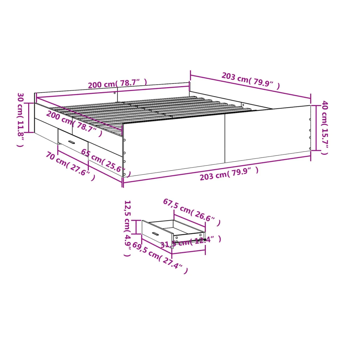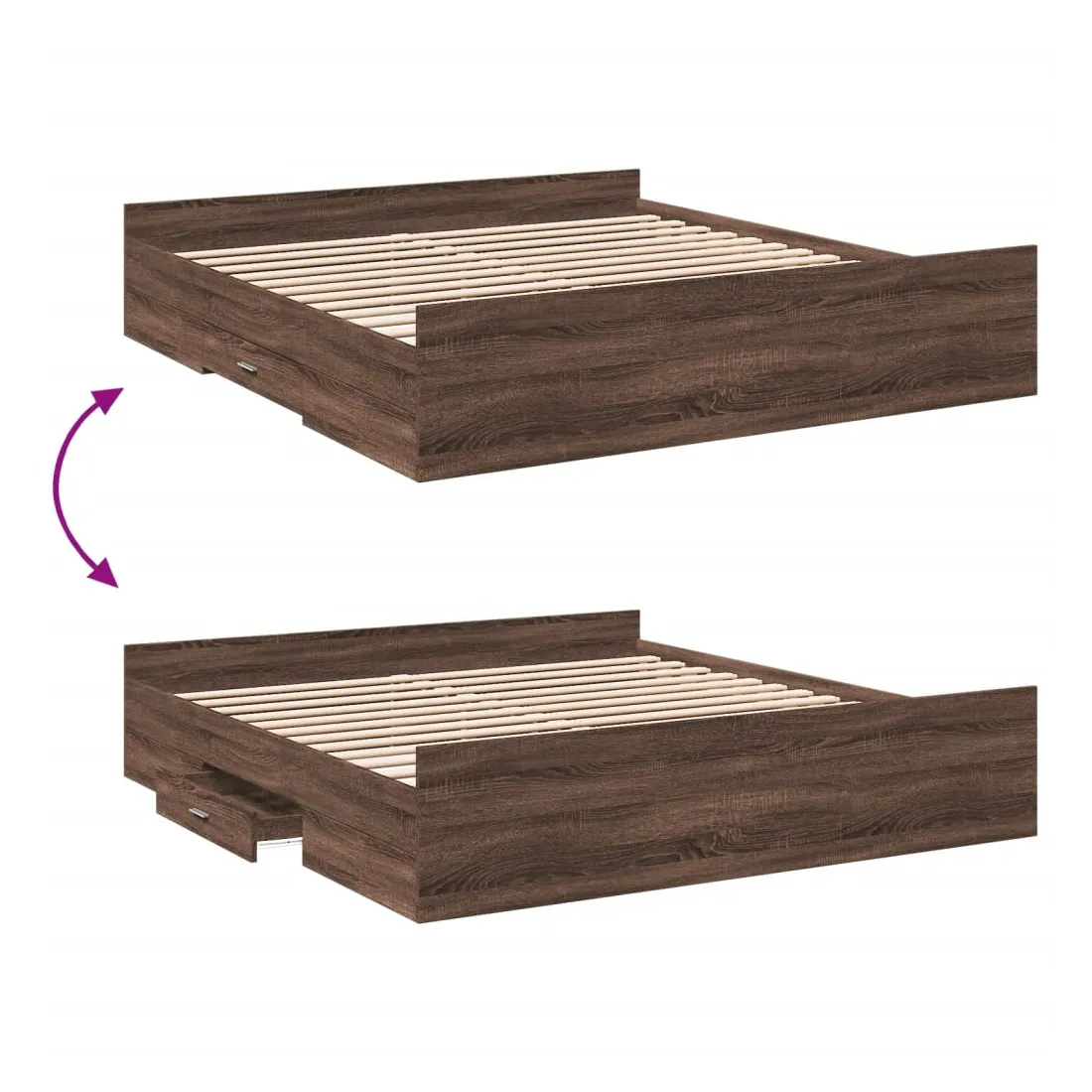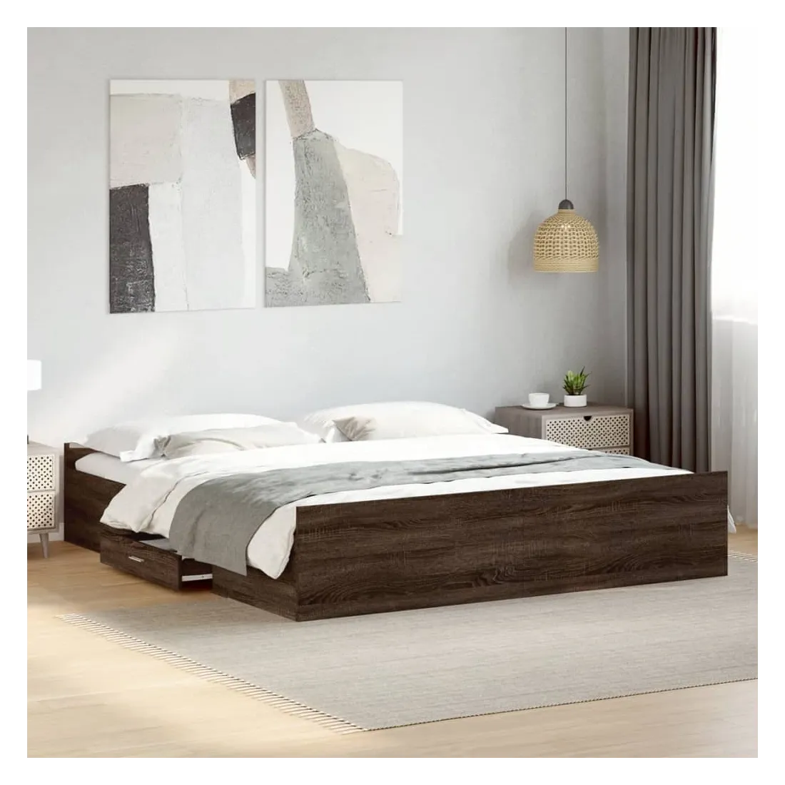 Cadre de lit avec tiroirs sans matelas chêne marron 200x200 cm