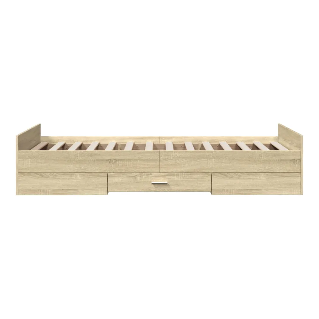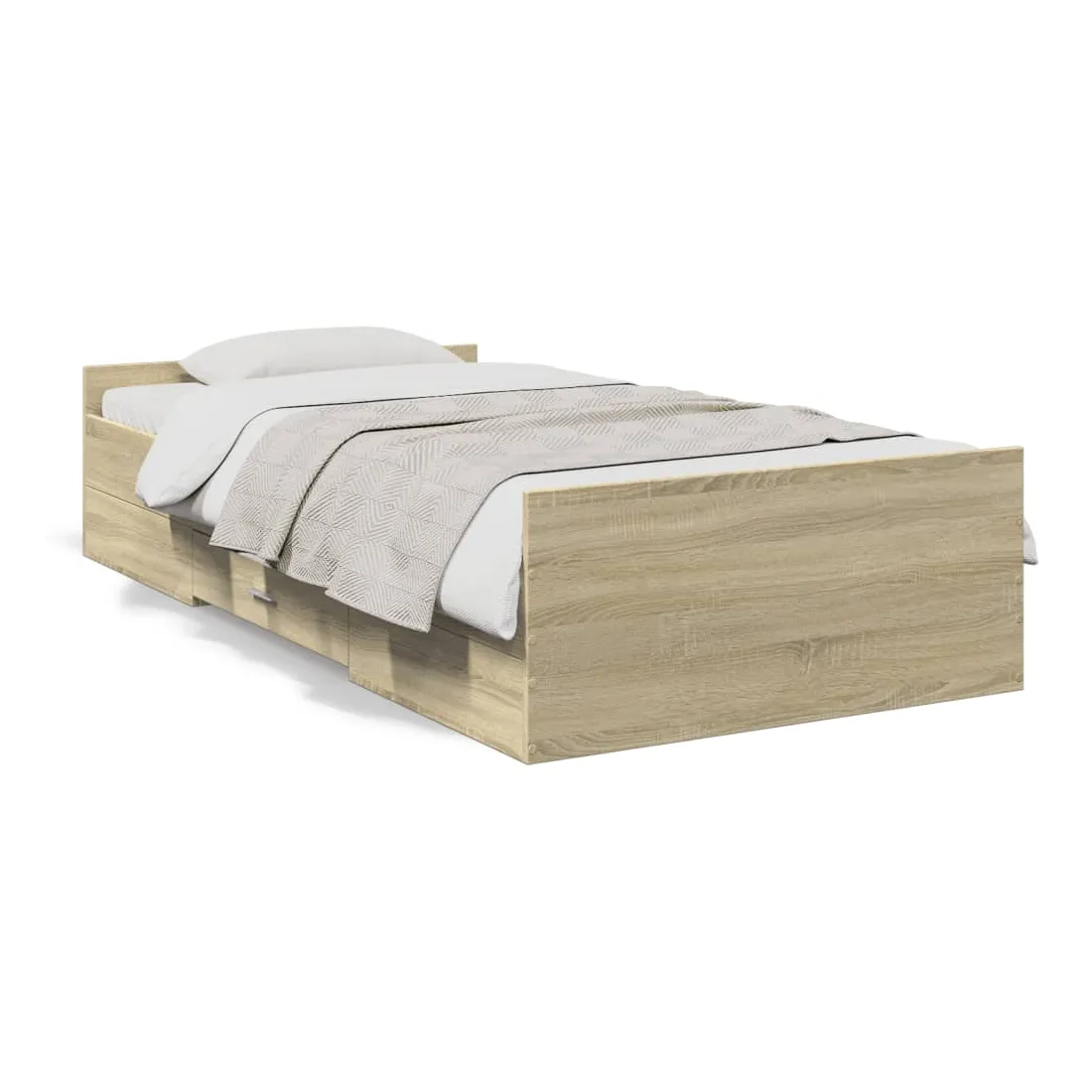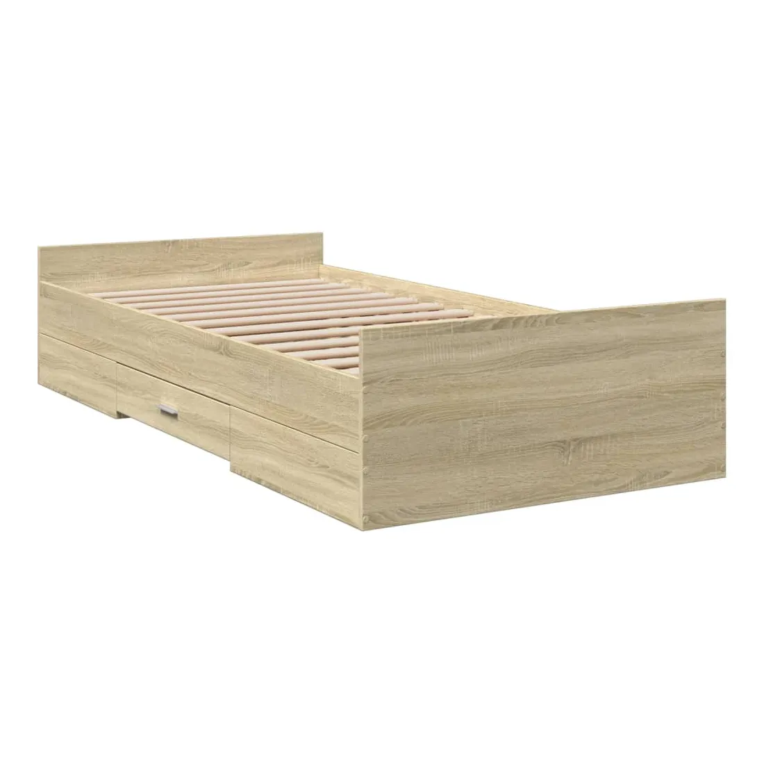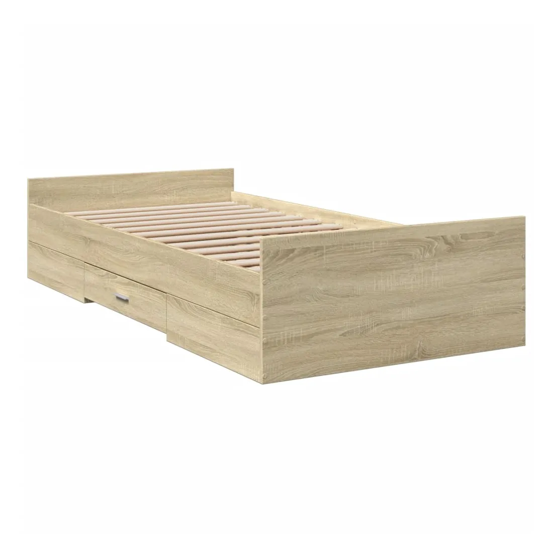 Ajoutez une touche moderne à votre chambre à coucher avec ce cadre de lit avec tiroirs ! Il apportera une touche pratique et décorative à votre espace de vie. Matériau durable : le cadre de lit est fabriquée en bois d'ingénierie. Le bois d'ingénierie est d'une qualité exceptionnelle avec une surface lisse et présente également de la résistance, de la stabilité et de la résistance à l'humidité.Lattes robustes : les lattes de contreplaqué assurent une bonne répartition du poids, garantissant que le matelas reste en place à chaque torsion de votre corps pendant le sommeil.Fonction de rangement : les tiroirs de lit inclus offrent suffisamment d'espace de rangement pour ranger vos articles essentiels, gardant votre pièce propre et bien rangée. Bon à savoir :Un matelas n'est pas inclus avec ce lit. Nous offrons une sélection variée de matelas. Vous pouvez consulter notre boutique pour trouver un matelas assorti.