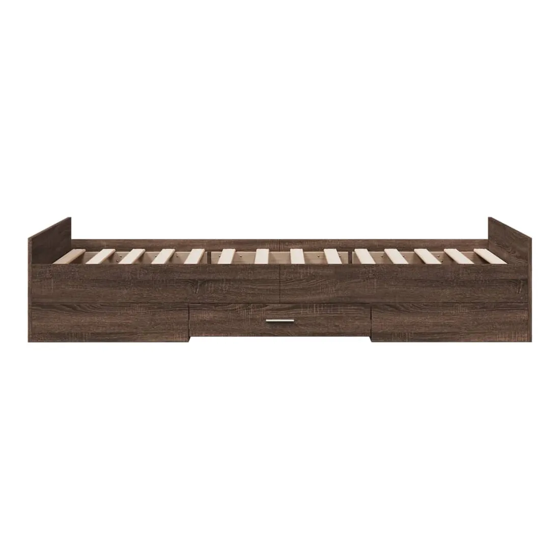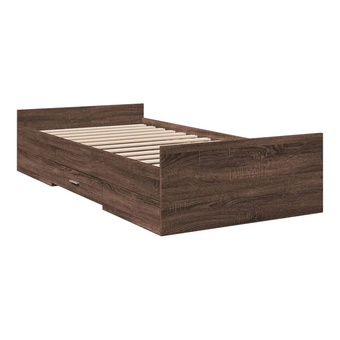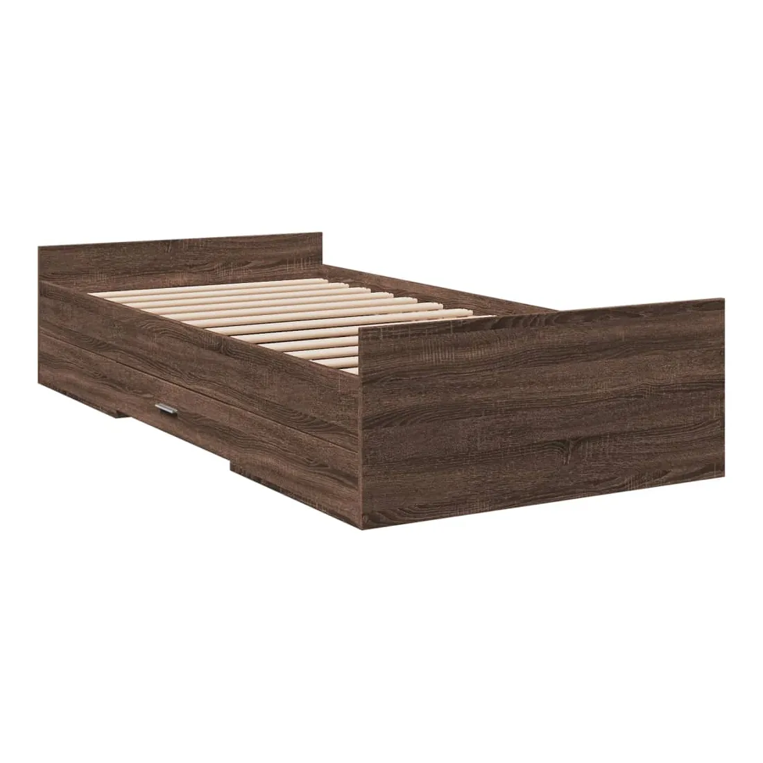 Ajoutez une touche moderne à votre chambre à coucher avec ce cadre de lit avec tiroirs ! Il apportera une touche pratique et décorative à votre espace de vie. Matériau durable : le cadre de lit est fabriquée en bois d'ingénierie. Le bois d'ingénierie est d'une qualité exceptionnelle avec une surface lisse et présente également de la résistance, de la stabilité et de la résistance à l'humidité.Lattes robustes : les lattes de contreplaqué assurent une bonne répartition du poids, garantissant que le matelas reste en place à chaque torsion de votre corps pendant le sommeil.Fonction de rangement : les tiroirs de lit inclus offrent suffisamment d'espace de rangement pour ranger vos articles essentiels, gardant votre pièce propre et bien rangée. Bon à savoir :Un matelas n'est pas inclus avec ce lit. Nous offrons une sélection variée de matelas. Vous pouvez consulter notre boutique pour trouver un matelas assorti.