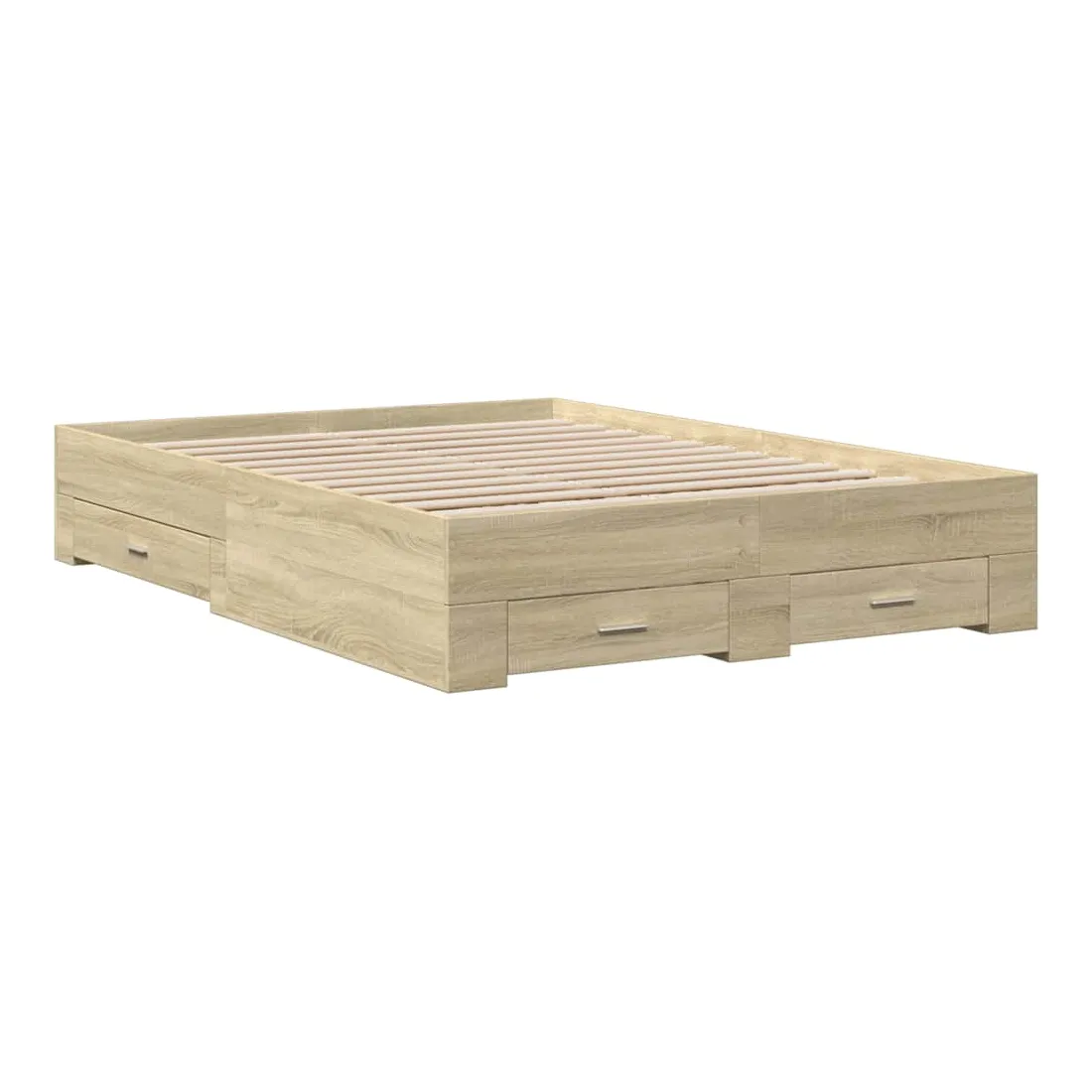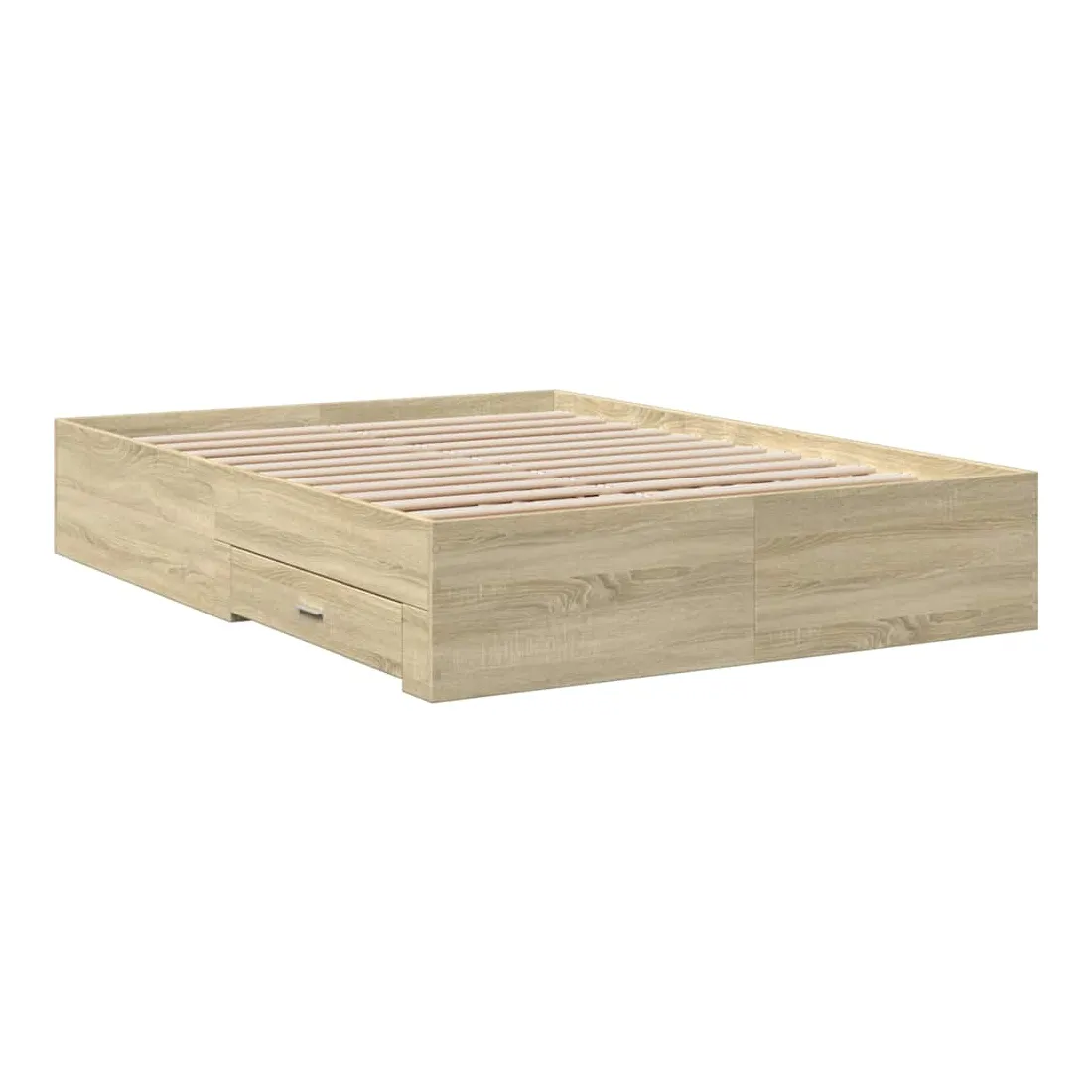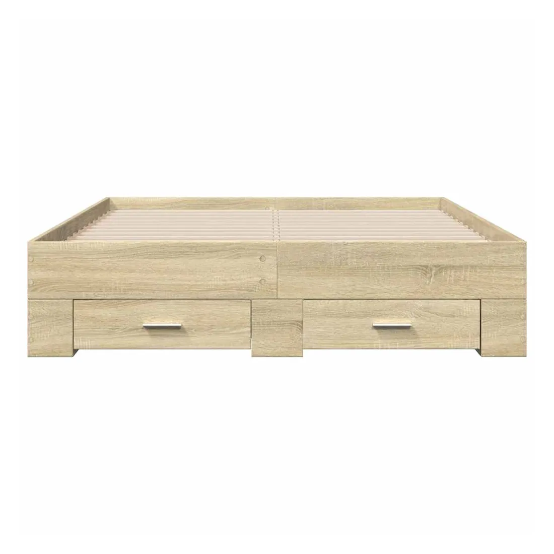 Ajoutez une touche moderne à votre chambre à coucher avec ce cadre de lit avec tiroirs ! Il apportera une touche pratique et décorative à votre espace de vie. Matériau durable : le cadre de lit est fabriquée en bois d'ingénierie. Le bois d'ingénierie est d'une qualité exceptionnelle avec une surface lisse et présente également de la résistance, de la stabilité et de la résistance à l'humidité.Lattes robustes : les lattes de contreplaqué assurent une bonne répartition du poids, garantissant que le matelas reste en place à chaque torsion de votre corps pendant le sommeil.Fonction de rangement : les tiroirs de lit inclus offrent suffisamment d'espace de rangement pour ranger vos articles essentiels, gardant votre pièce propre et bien rangée. Bon à savoir :Un matelas n'est pas inclus avec ce lit. Nous offrons une sélection variée de matelas. Vous pouvez consulter notre boutique pour trouver un matelas assorti.