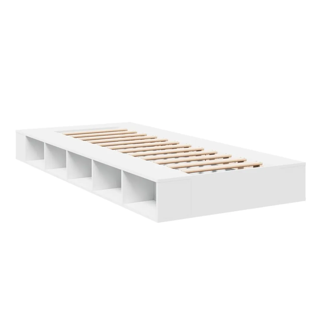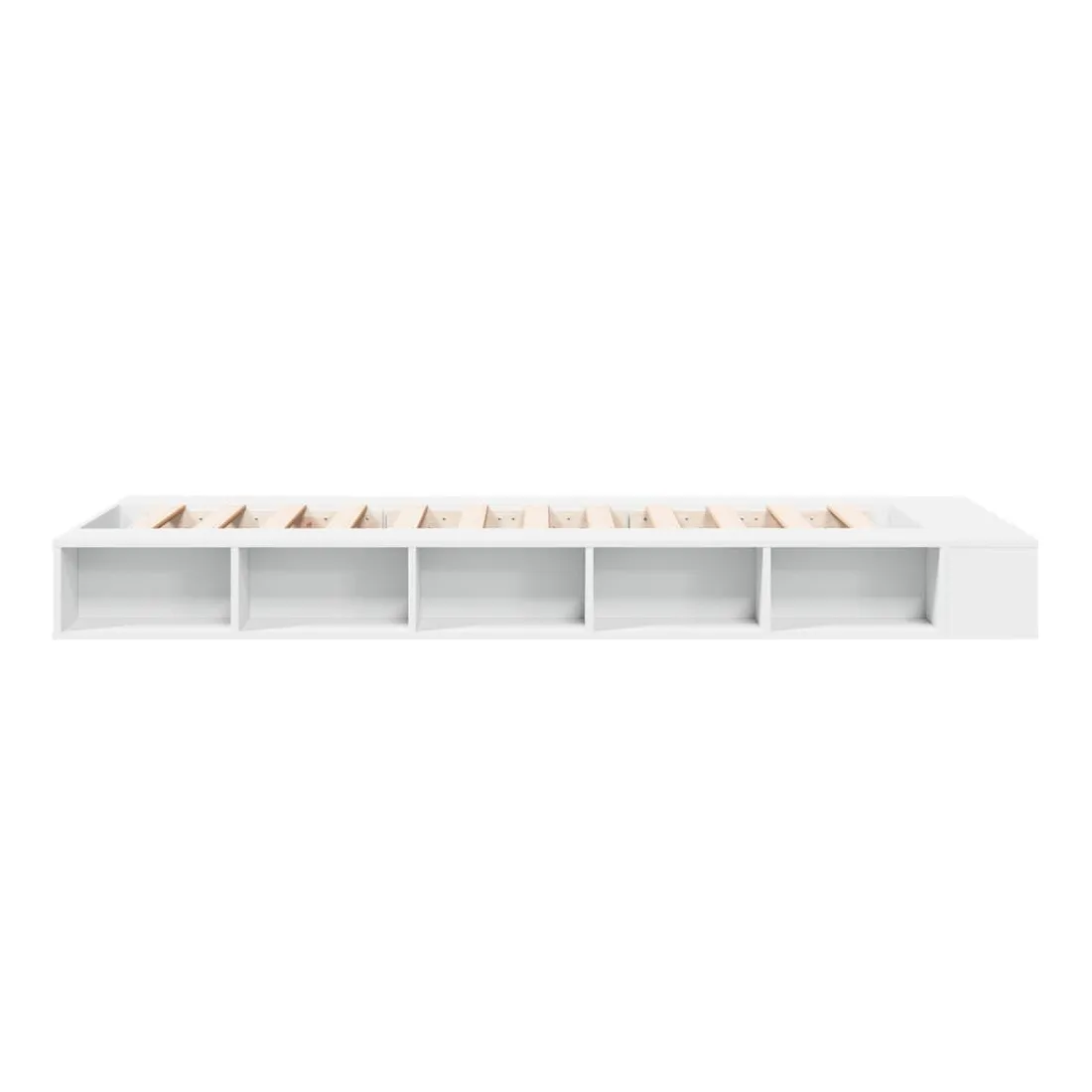 Obtenez une meilleure nuit de sommeil reposante grâce à ce cadre de lit ! Il est un supplément accueillant à toute chambre à coucher. Matériau durable : le cadre de lit est fabriquée en bois d'ingénierie. Le bois d'ingénierie est d'une qualité exceptionnelle avec une surface lisse et présente également de la résistance, de la stabilité et de la résistance à l'humidité.Lattes pour un soutien optimal : le cadre de lit est complété par des lattes pour offrir un soutien et une respirabilité essentiels à votre matelas.Fonction de rangement : ce cadre de lit offre des compartiments ouverts pour garder vos magazines, livres, jouets et autres petits objets bien organisés. Bon à savoir :Un matelas n'est pas inclus avec ce lit. Nous offrons une sélection variée de matelas. Vous pouvez consulter notre boutique pour trouver un matelas assorti.