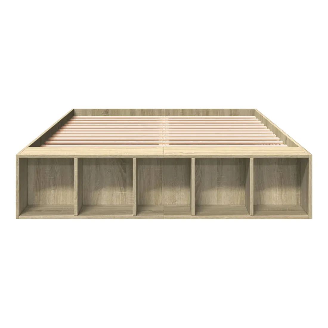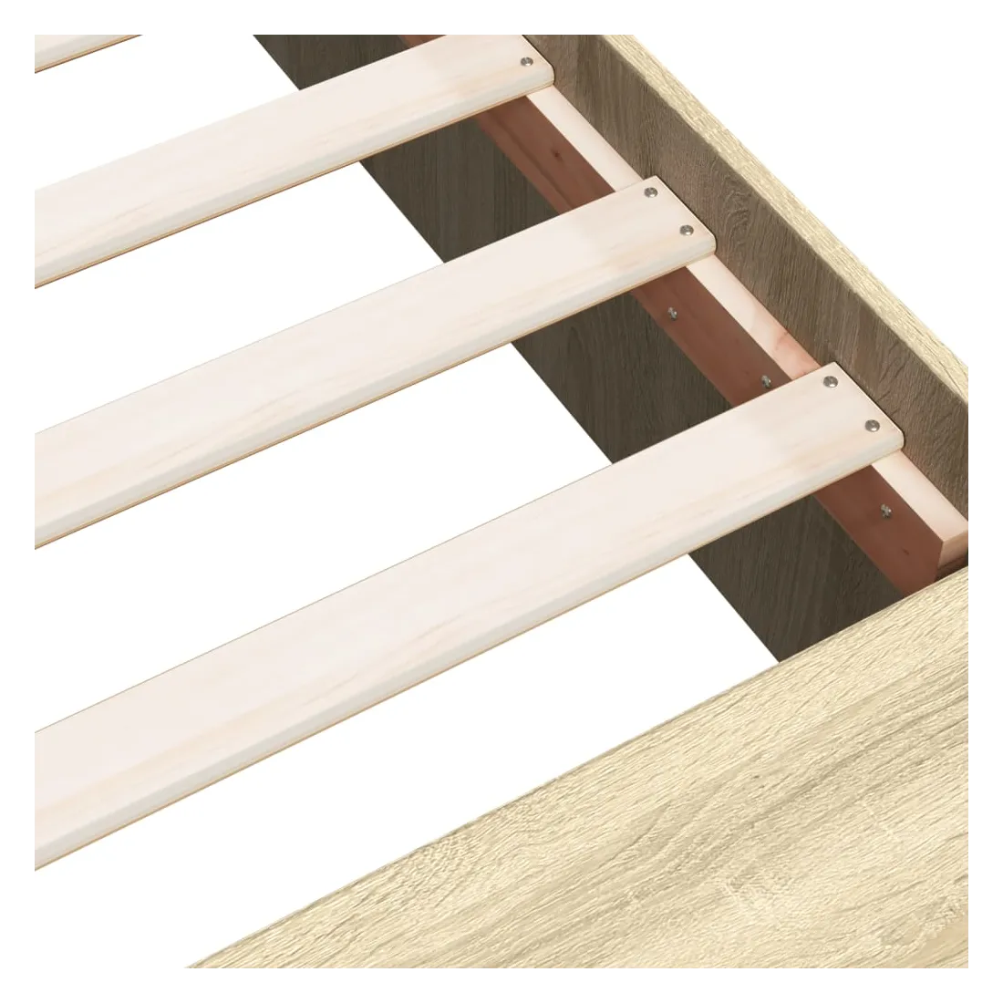 Ajoutez une touche moderne à votre chambre à coucher avec ce cadre de lit ! Il apportera une touche pratique et décorative à votre espace de vie. Matériau durable : le cadre de lit est fabriquée en bois d'ingénierie. Le bois d'ingénierie est d'une qualité exceptionnelle avec une surface lisse et présente également de la résistance, de la stabilité et de la résistance à l'humidité.Lattes robustes : les lattes de contreplaqué assurent une bonne répartition du poids, garantissant que le matelas reste en place à chaque torsion de votre corps pendant le sommeil.Fonction de rangement : les compartiments de lit inclus offrent un grand espace de rangement pour ranger vos articles essentiels, gardant votre chambre propre et bien rangée. Bon à savoir :Un matelas n'est pas inclus avec ce lit. Nous offrons une sélection variée de matelas. Vous pouvez consulter notre boutique pour trouver un matelas assorti.