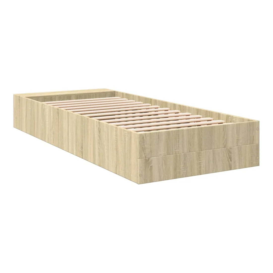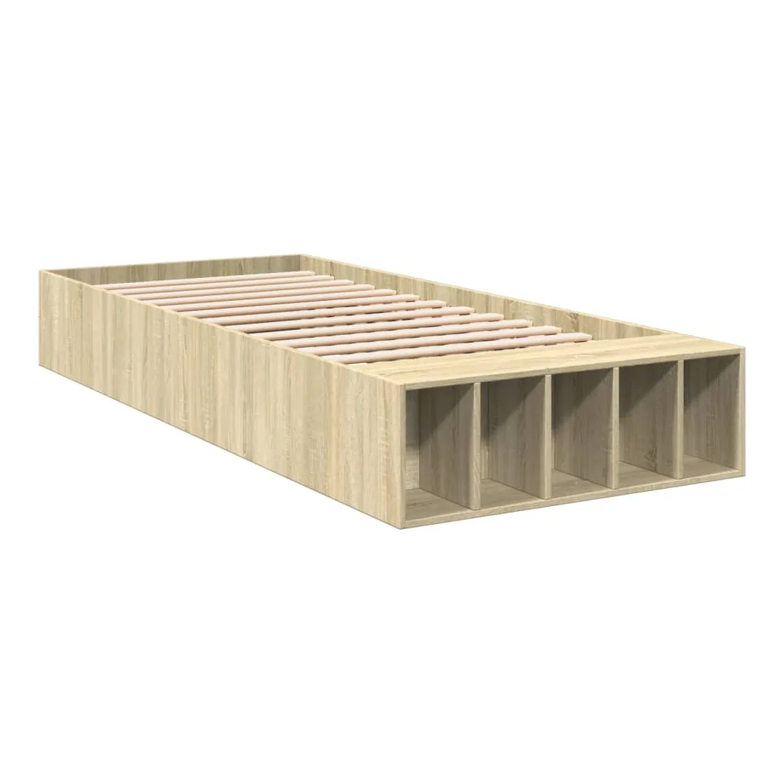 Ajoutez une touche moderne à votre chambre à coucher avec ce cadre de lit ! Il apportera une touche pratique et décorative à votre espace de vie. Matériau durable : le cadre de lit est fabriquée en bois d'ingénierie. Le bois d'ingénierie est d'une qualité exceptionnelle avec une surface lisse et présente également de la résistance, de la stabilité et de la résistance à l'humidité.Lattes robustes : les lattes de contreplaqué assurent une bonne répartition du poids, garantissant que le matelas reste en place à chaque torsion de votre corps pendant le sommeil.Fonction de rangement : les compartiments de lit inclus offrent un grand espace de rangement pour ranger vos articles essentiels, gardant votre chambre propre et bien rangée. Bon à savoir :Un matelas n'est pas inclus avec ce lit. Nous offrons une sélection variée de matelas. Vous pouvez consulter notre boutique pour trouver un matelas assorti.
