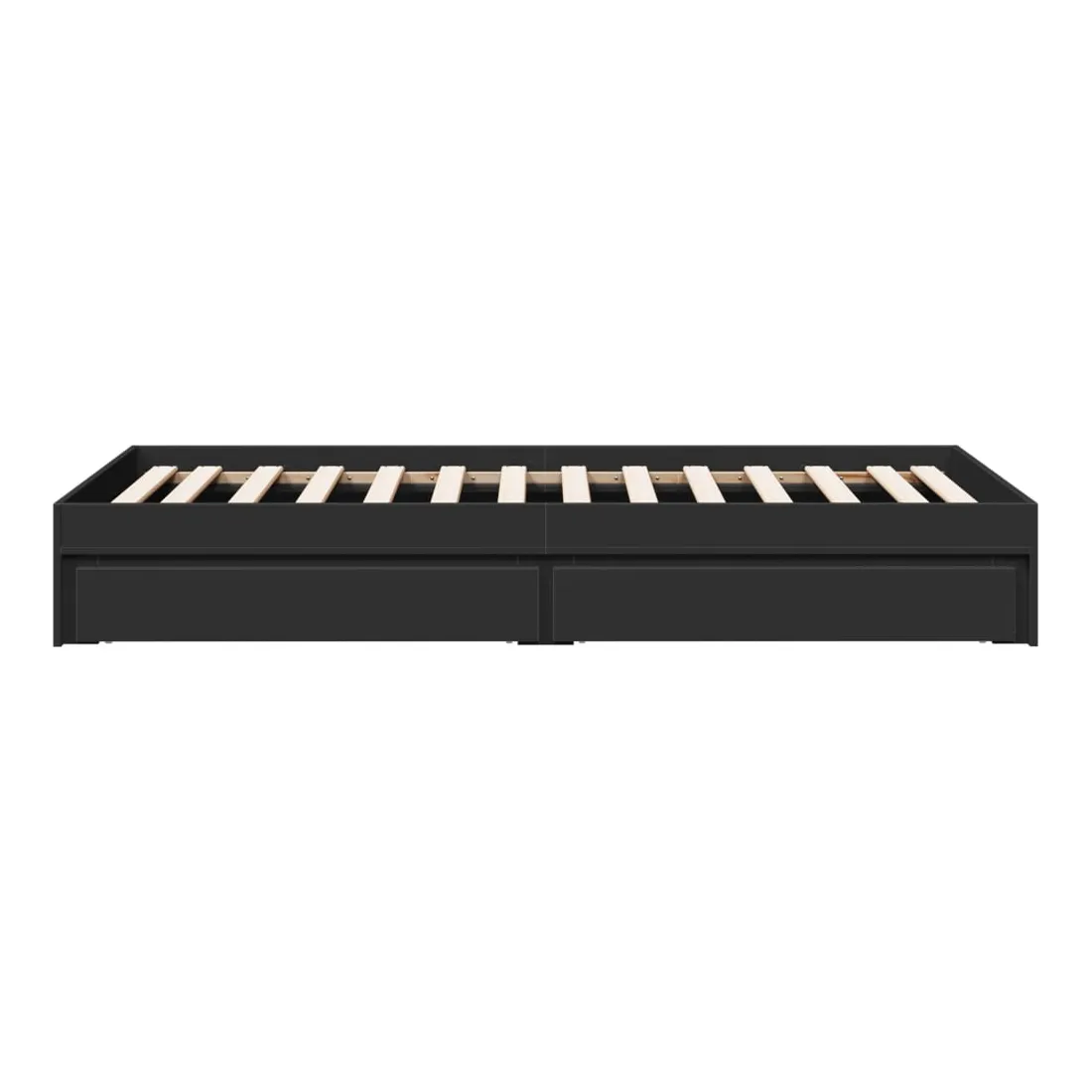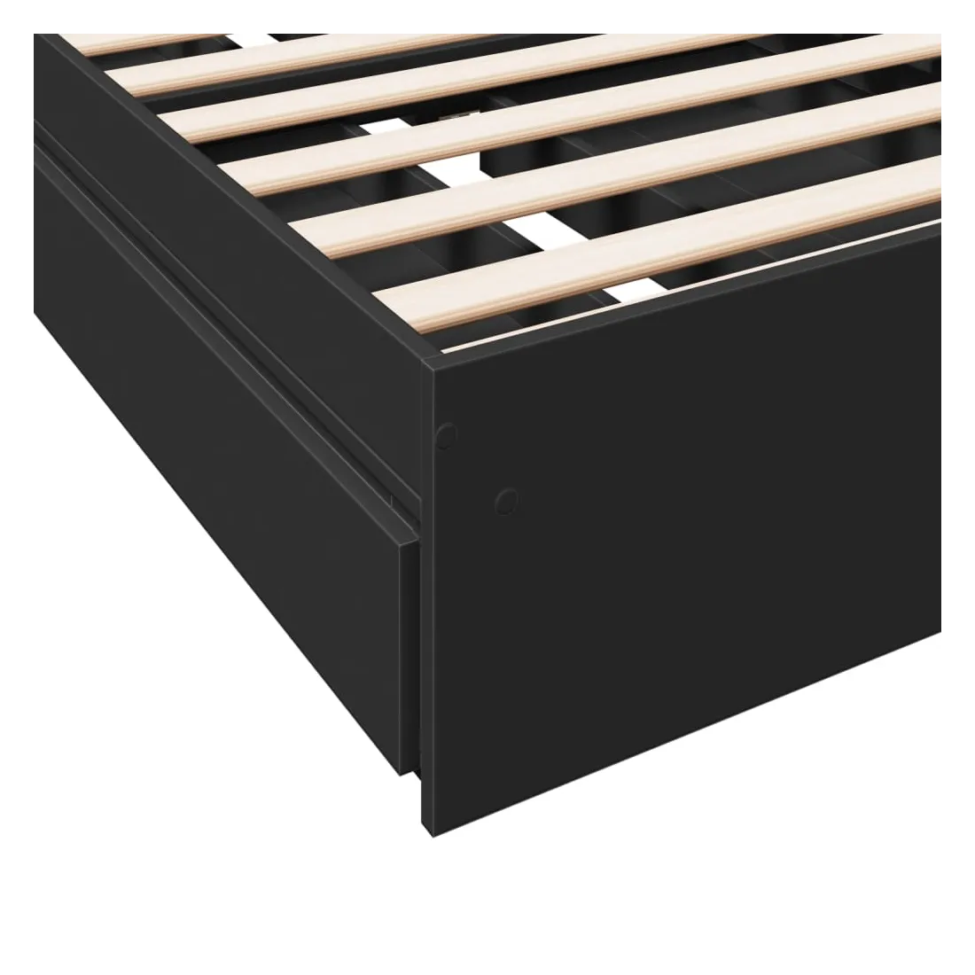 Ajoutez une touche moderne à votre chambre à coucher avec ce cadre de lit avec tiroirs ! Il apportera une touche pratique et décorative à votre espace de vie. Matériau durable : le cadre de lit est fabriquée en bois d'ingénierie. Le bois d'ingénierie est d'une qualité exceptionnelle avec une surface lisse et présente également de la résistance, de la stabilité et de la résistance à l'humidité.Lattes robustes : les lattes de contreplaqué assurent une bonne répartition du poids, garantissant que le matelas reste en place à chaque torsion de votre corps pendant le sommeil.Fonction de rangement : les tiroirs de lit inclus offrent suffisamment d'espace de rangement pour ranger vos articles essentiels, gardant votre pièce propre et bien rangée. Bon à savoir :Un matelas n'est pas inclus avec ce lit. Nous offrons une sélection variée de matelas. Vous pouvez consulter notre boutique pour trouver un matelas assorti.